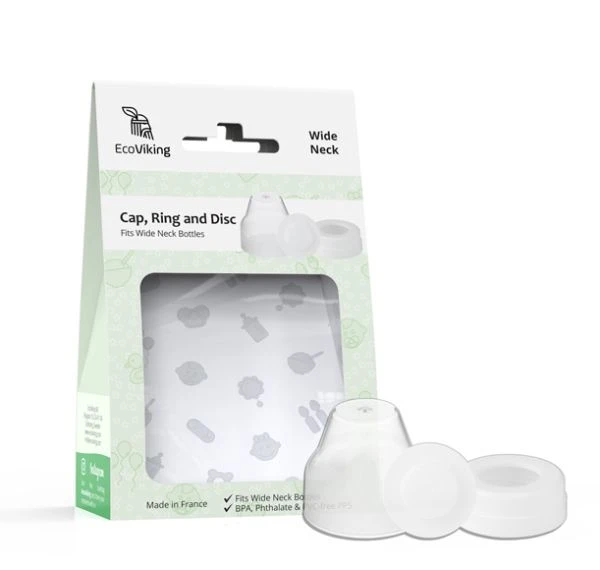 The cap, ring and sealing disc are compatible with EcoViking 120ml (4-ounce) and 240ml (8-ounce) wide neck baby bottles.