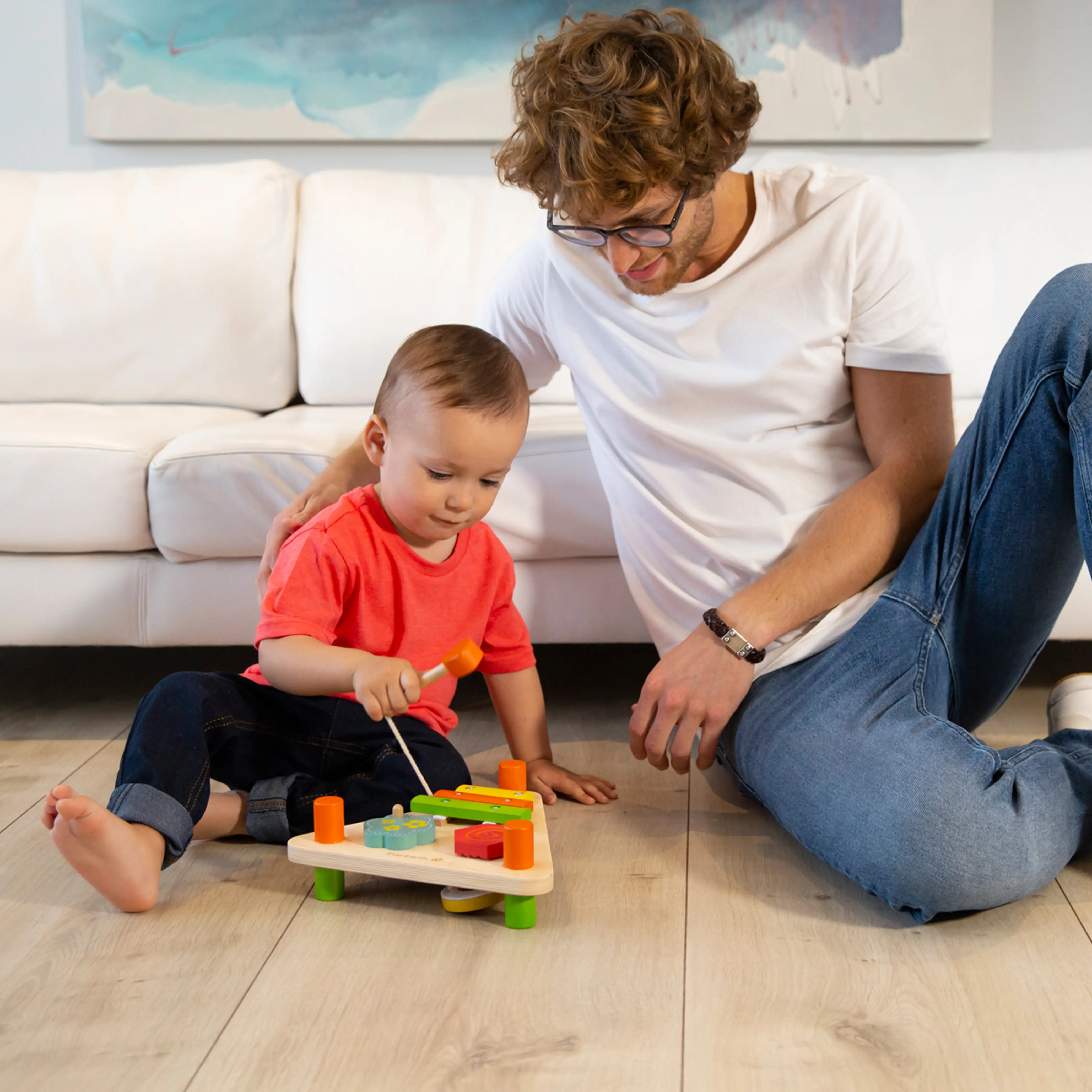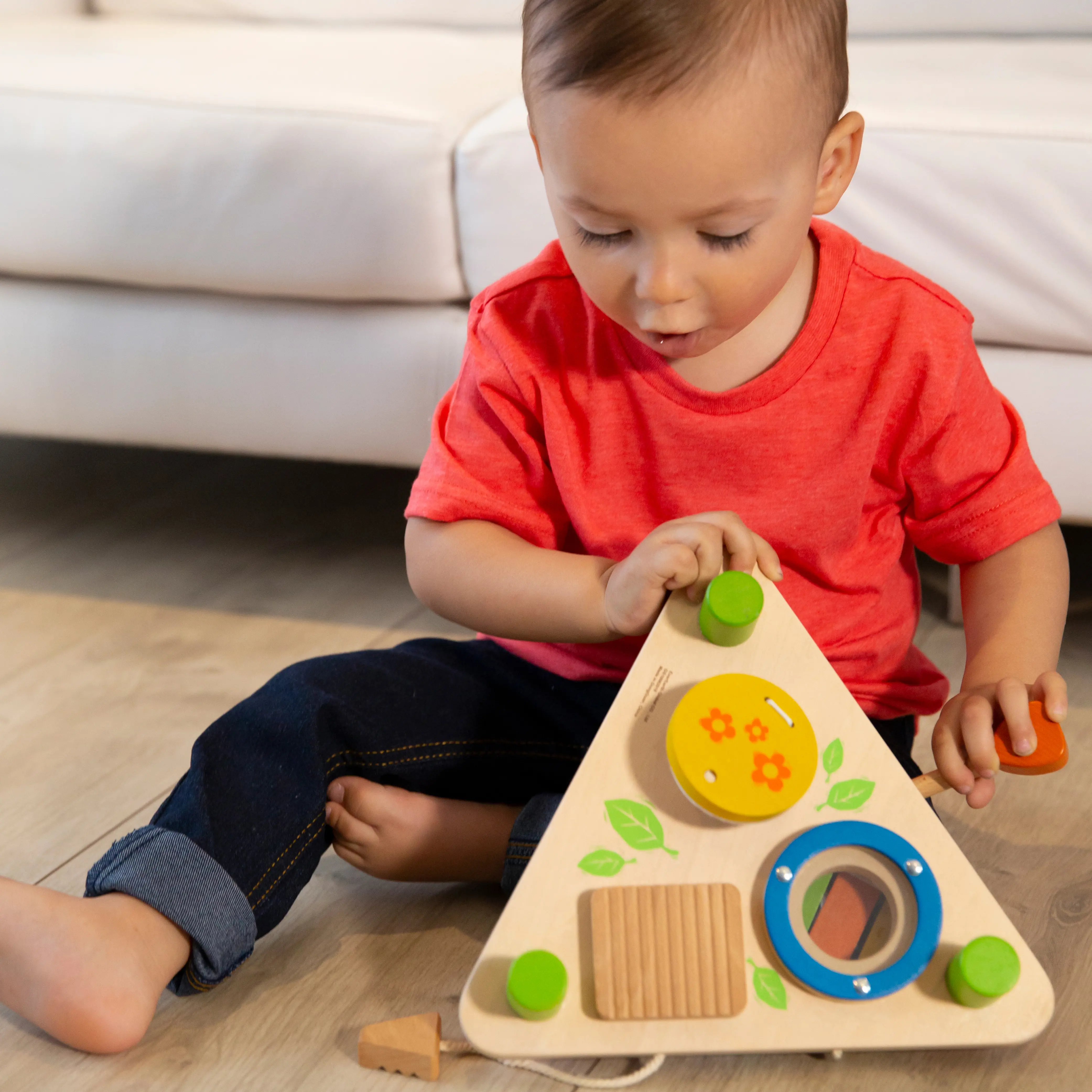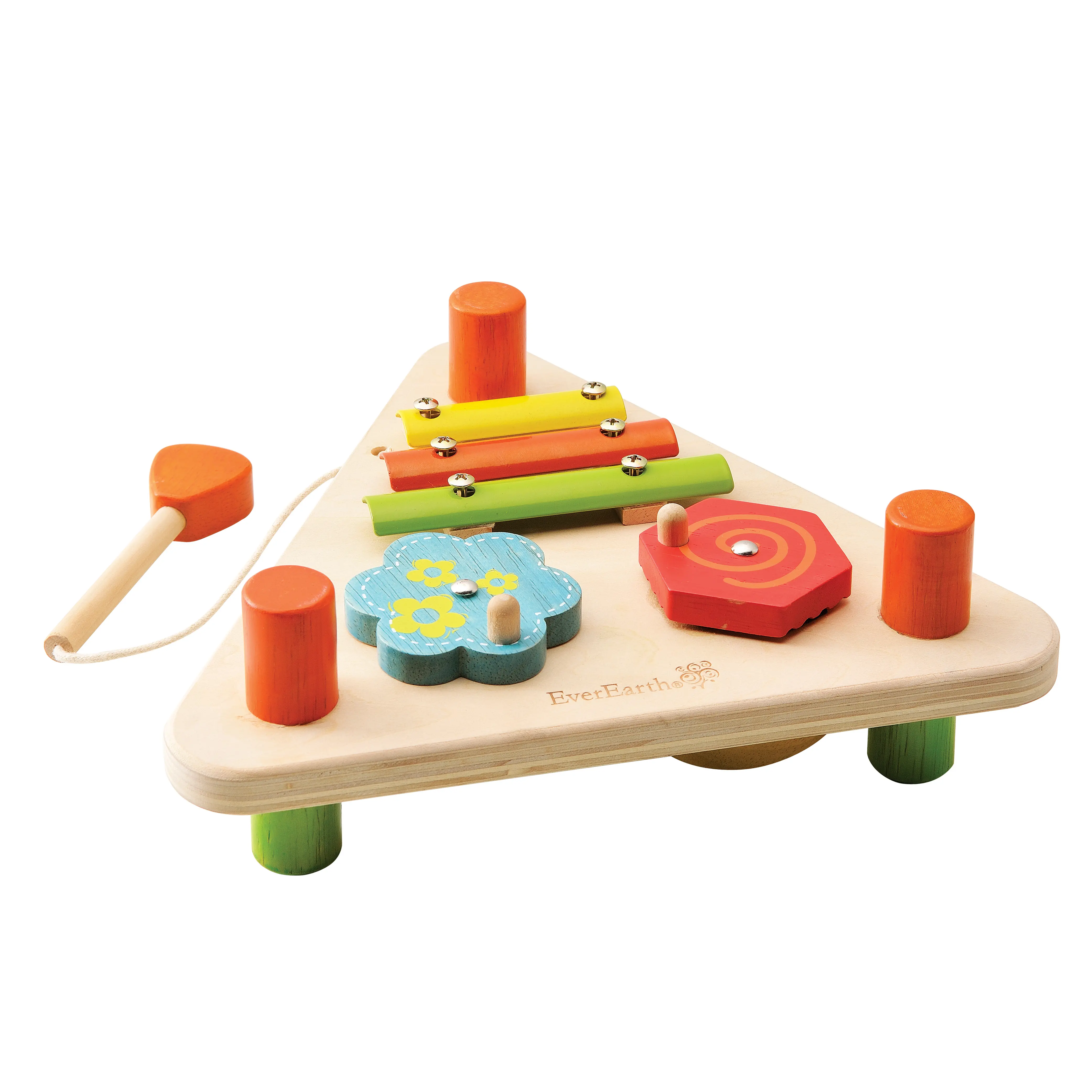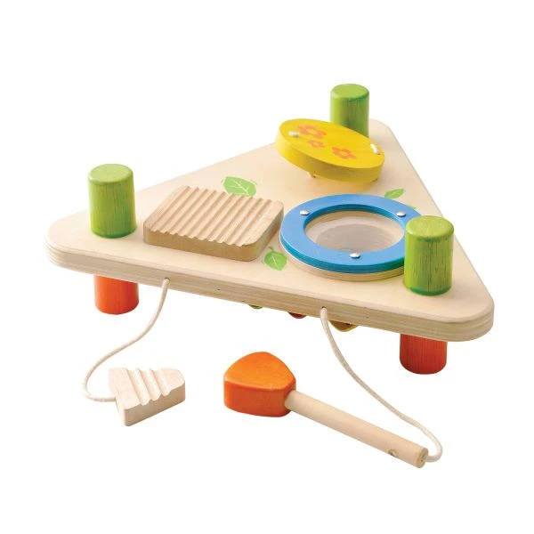 The Flip-Over Music Triangle from EverEarth offers children countless possibilities for proving their musical skills. The wooden toy features three different xylophone bars, a small drum and a ratchet, enabling children to discover a wide variety of sounds. The Music Triangle fosters the child’s auditory perception. By using the different musical instruments, they learn to distinguish between the different sounds and work out what they are. This also promotes motor skills and hand-eye coordination.