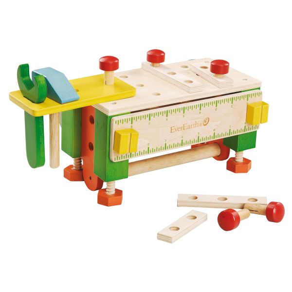 The Toolbox from EverEarth is perfect for little DIYers and those with aspirations to build and repair. In addition to its hammer, screw and turn functions, the Toolbox can also be repurposed in seconds into a workbench. The Toolbox and all of its accessories are made completely from wood so that there is no danger of injury. The Wooden Toolbox also enables children to develop their motor skills. With the numerous possibilities for play, it also helps train their colour perception. Suitable for children from 3 years.