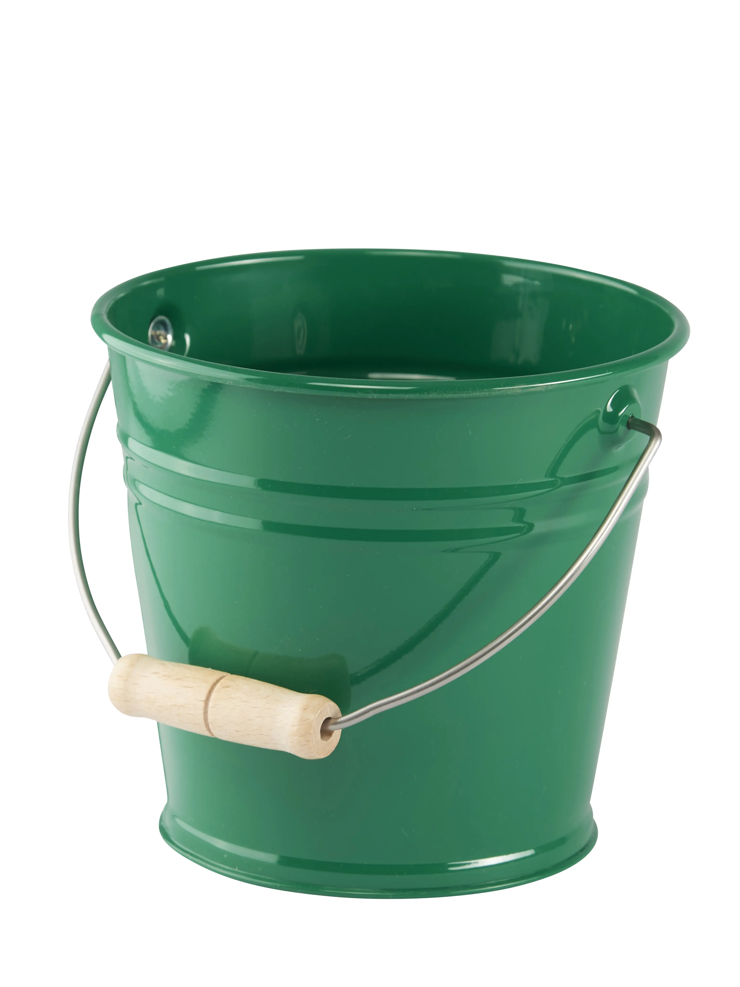 The metal bucket from Glückskäfer® has a sturdy wooden handle.