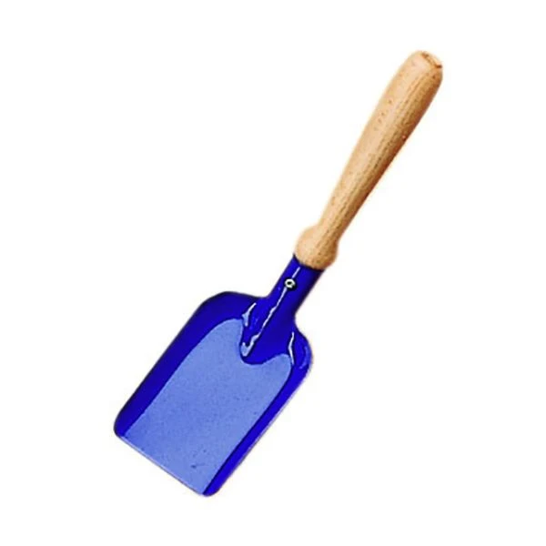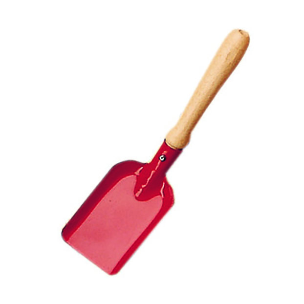 The small angular shovel by Glückskäfer® made of metal has a stable wooden handle.