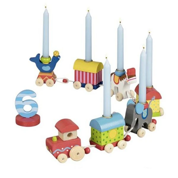 With goki's birthday train every birthday party becomes a special event. Loaded with numerous presents, the train leaves for your birthday. Colorful carriages and animals serve as birthday candle holders. While the candles in number form (1 to 6) are already included in the scope of delivery, the remaining wagons can also be decorated with the goki birthday candles.