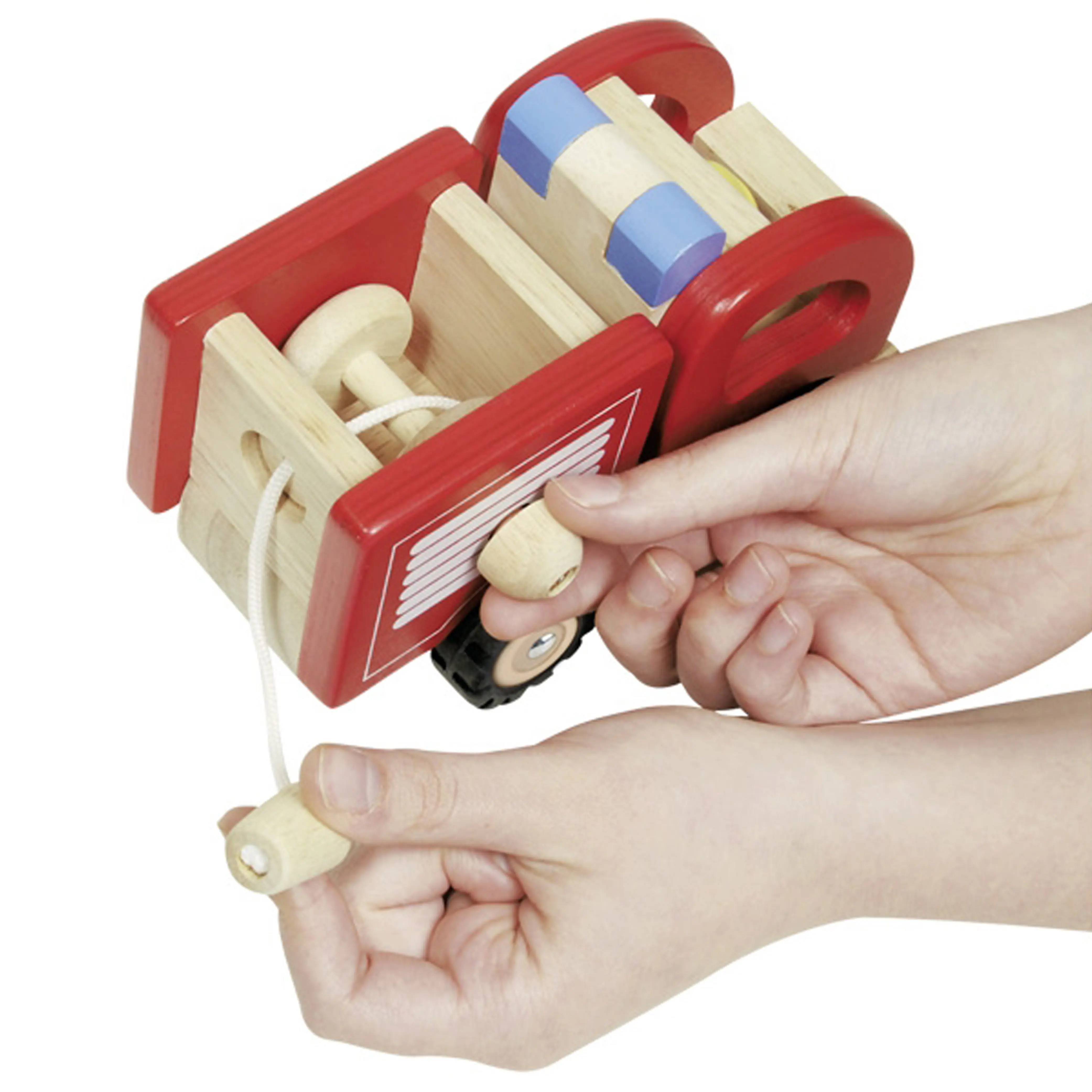 The goki fire brigade is a highlight of the solid wood series. Robust and with rubber tires, the fire truck is always ready for use.
