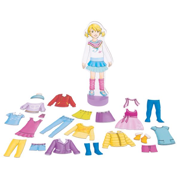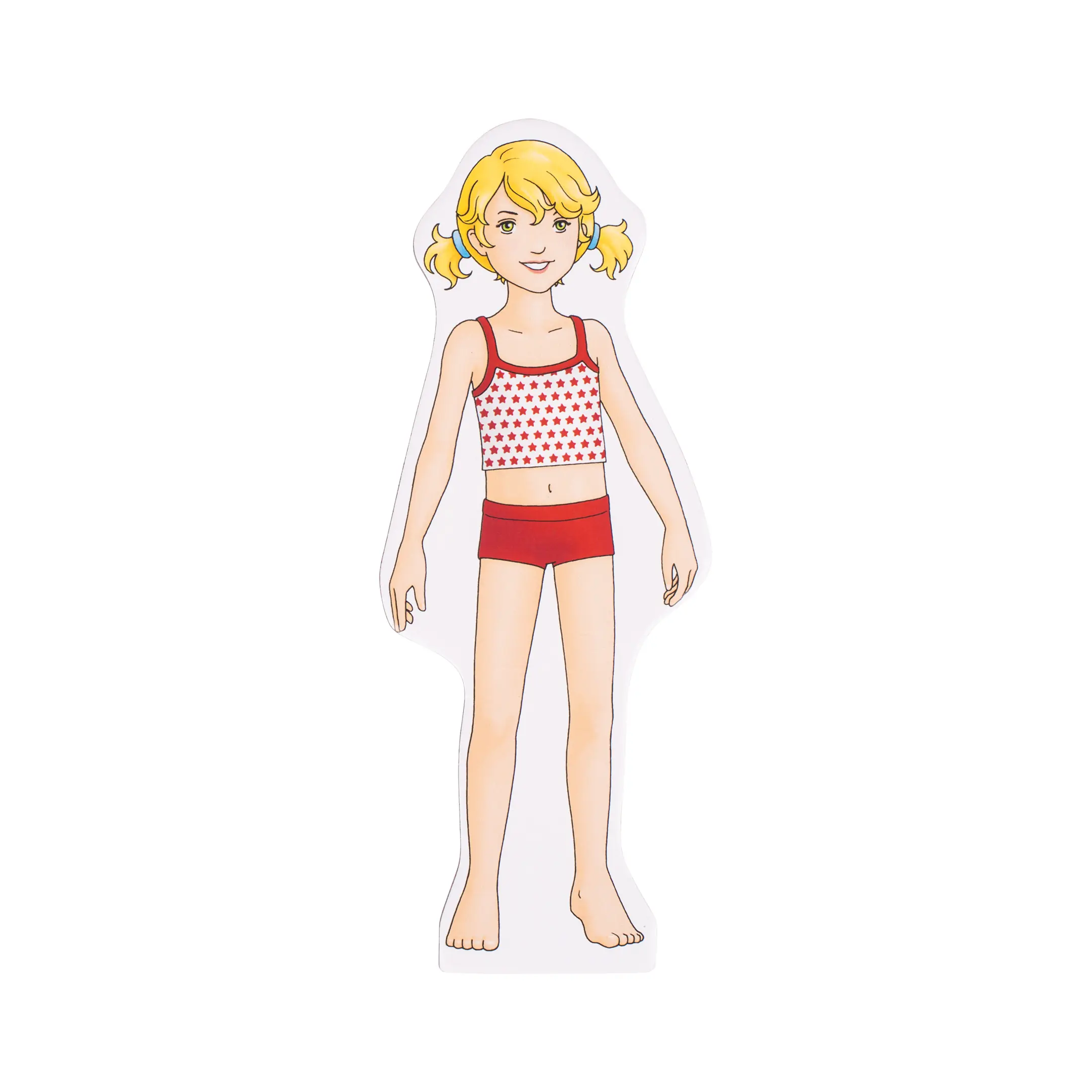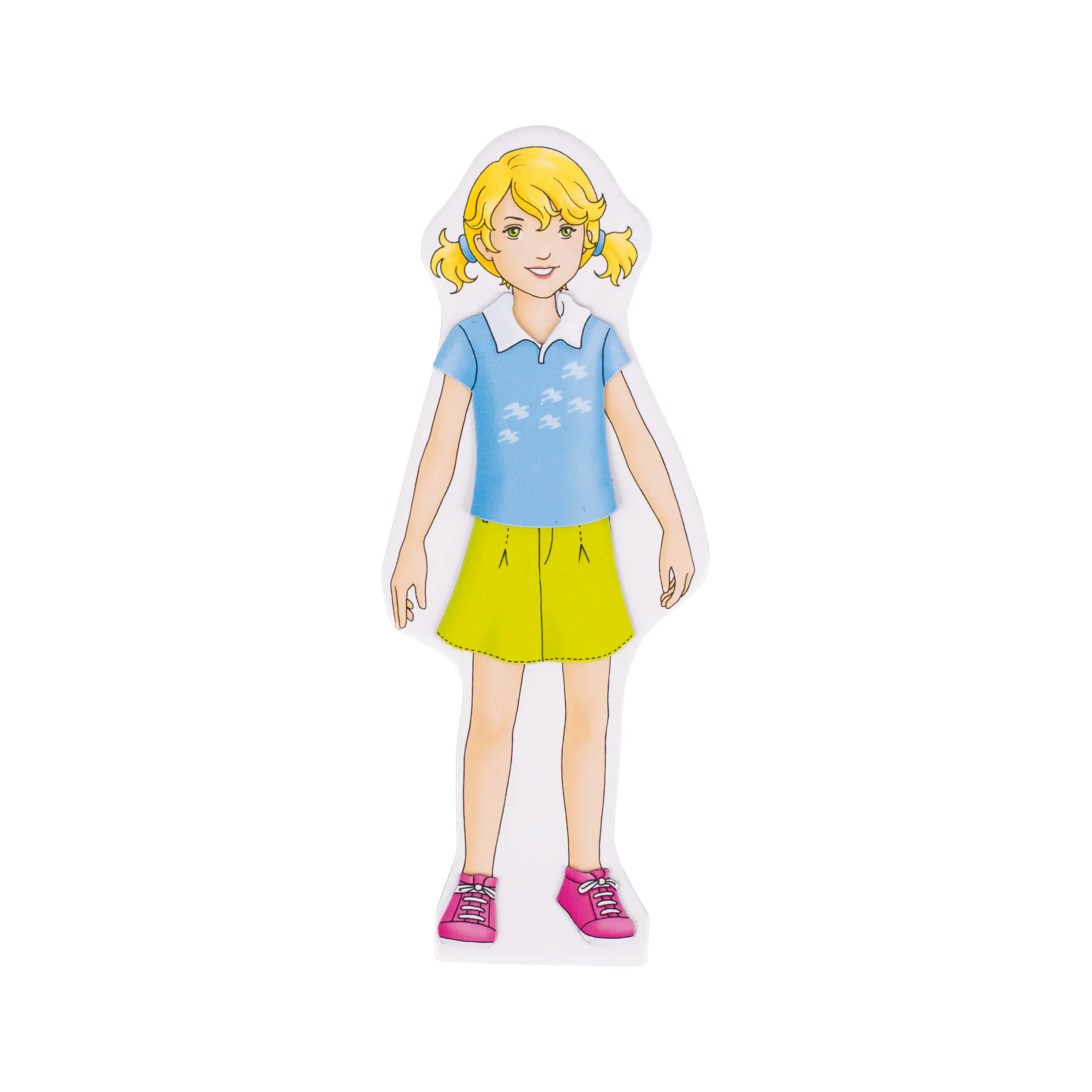 The game dress-up doll by goki consists of 10 different outfits and a figure to stand up.