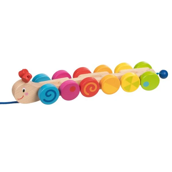 The interlocking links give it a distinctive gait. The highlight are the differently designed, coordinated wheels that accompany the caterpillar's run with a colorful play of colors.