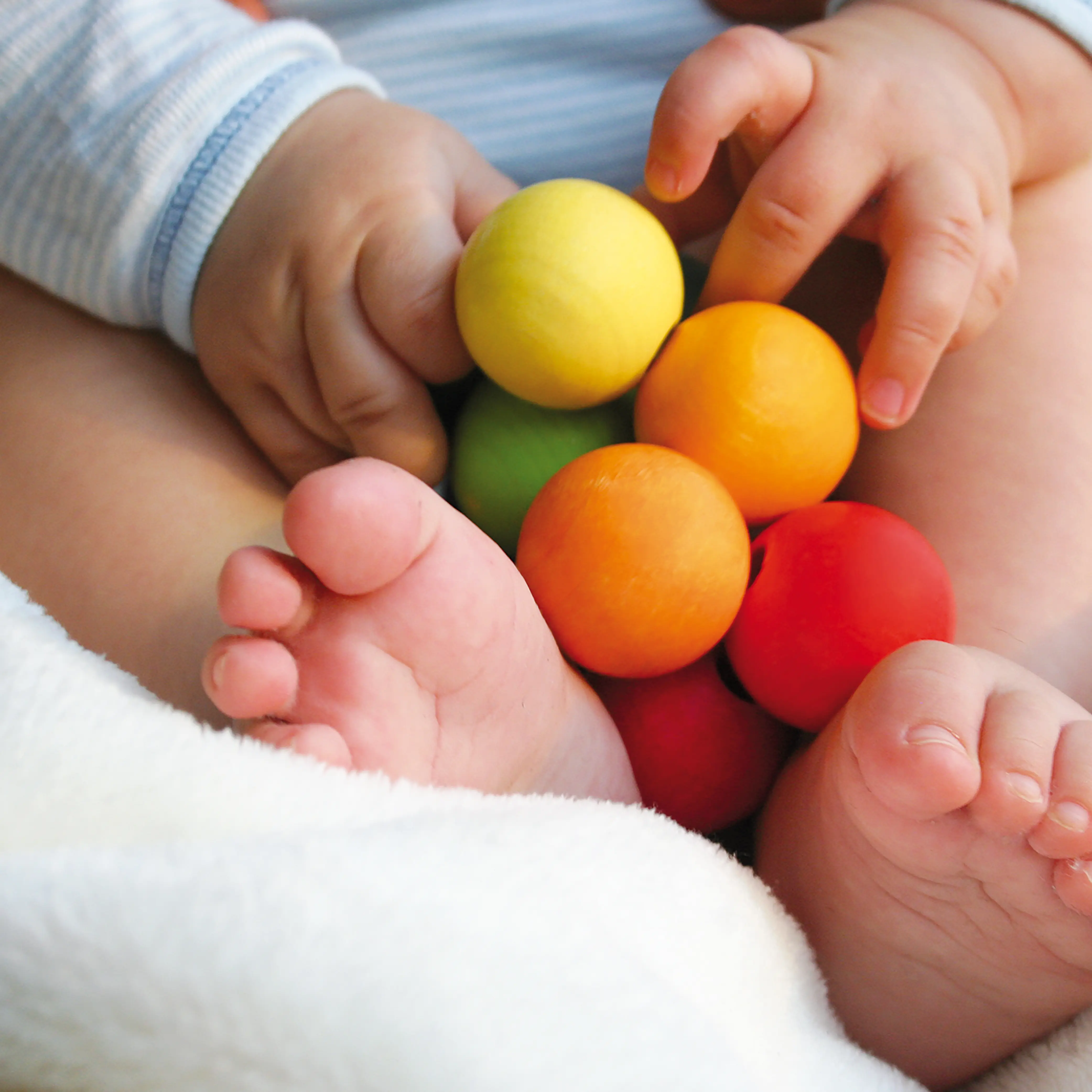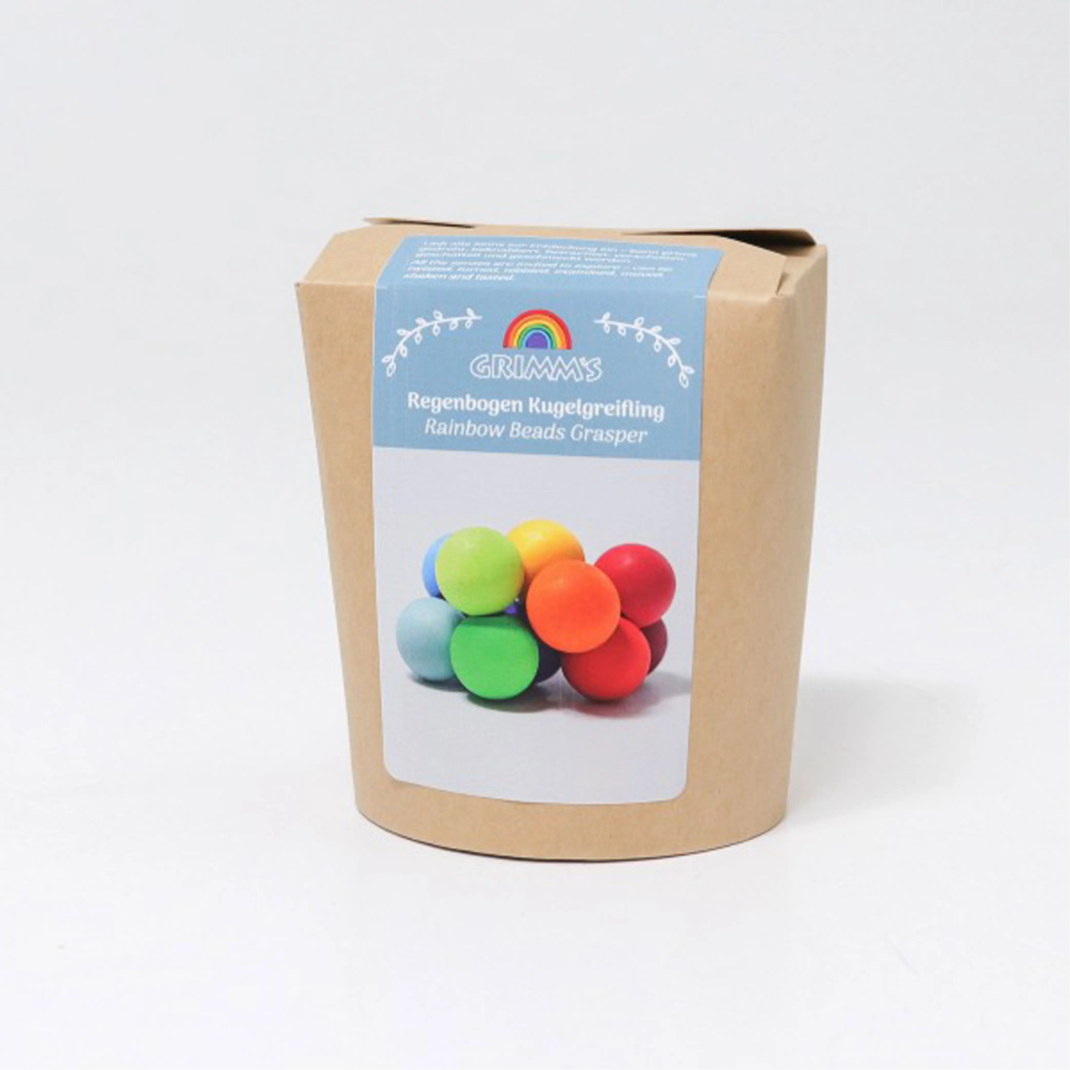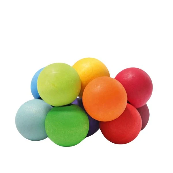 Wooden grasping toys are absolutely essential for babies. The GRIMM'S ball gripper consists of 12 wooden balls in rainbow colors. The individual balls are attached to a rubber band and can thus be arranged and moved in various ways.