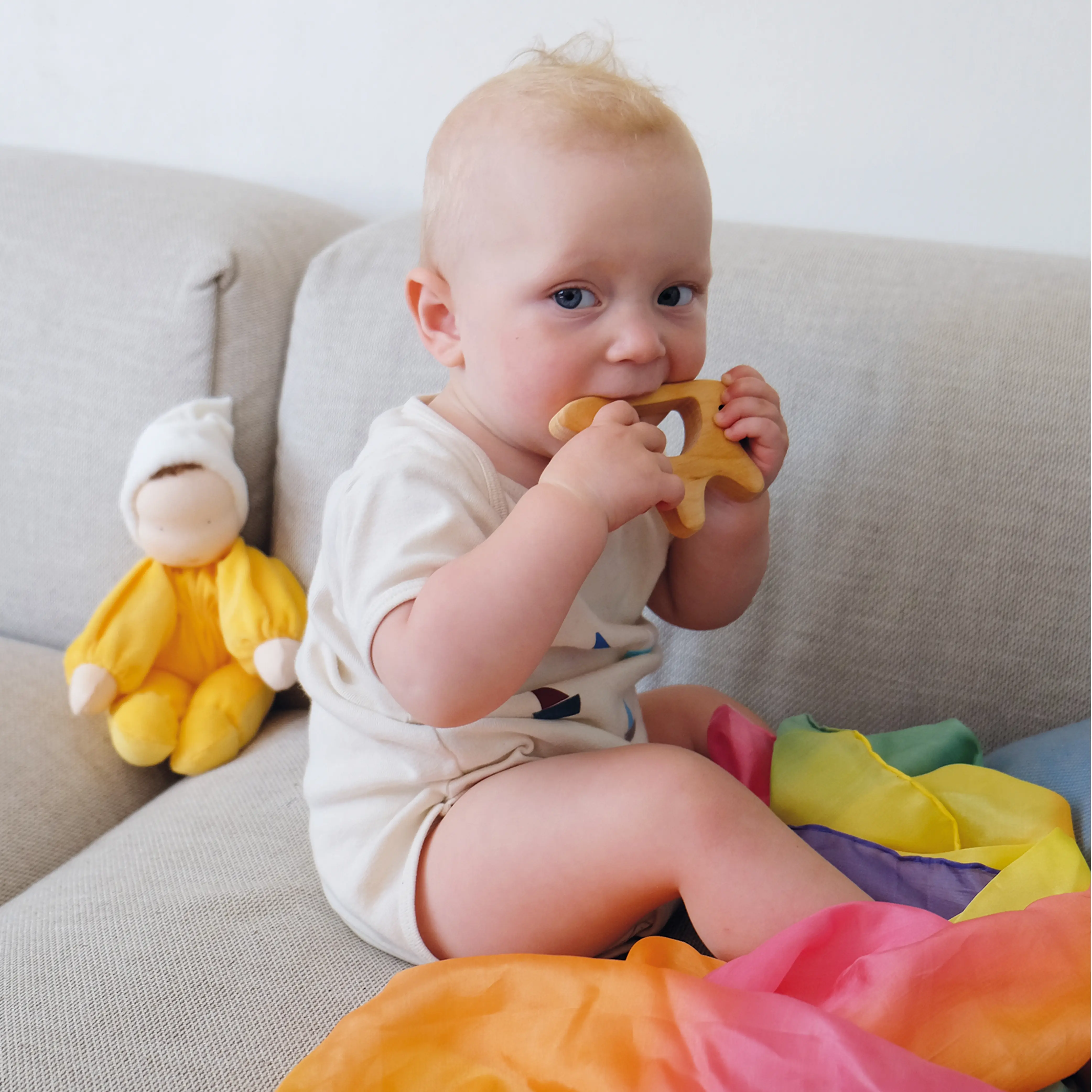 The Hedgehog Grasper is also ideal for combining with a play silk, small children will delight in discovering the textures and older children can hold onto the grasper to create movement in the silk.The wood used from the alder tree is very special and gives unique structure to each of our rattles and grasping toys.