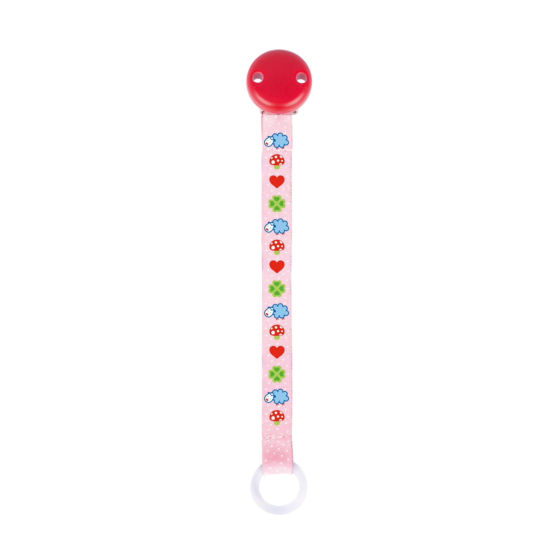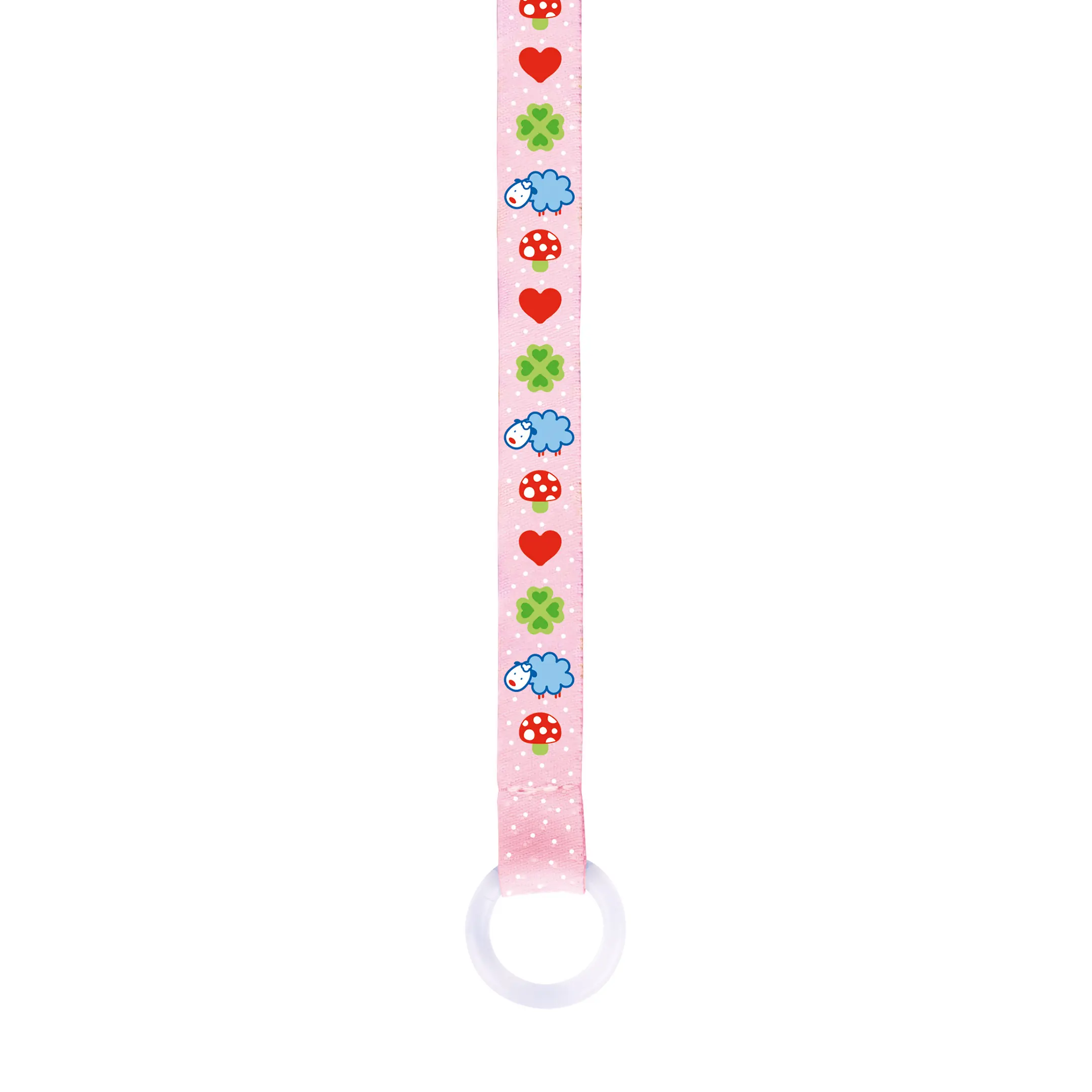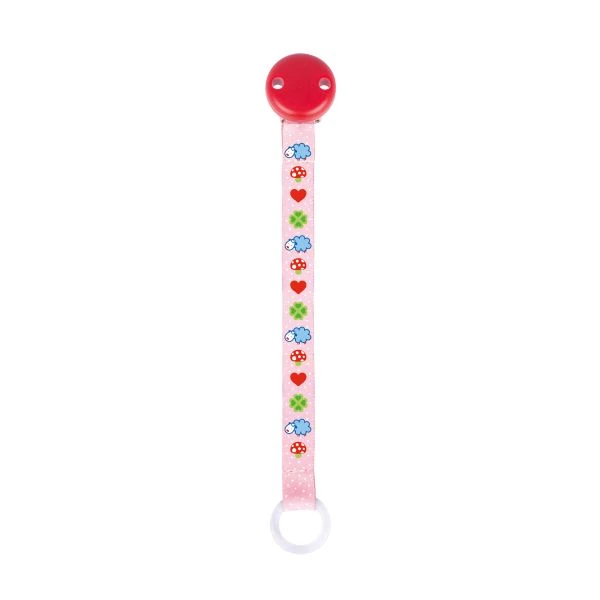 A pacifier chain made of fabric with a silicone ring that fits on different pacifiers. The textile articles with clips made of high-quality plastic are certified according to Oeko-Tex Standard 100 and washable at 60°C.