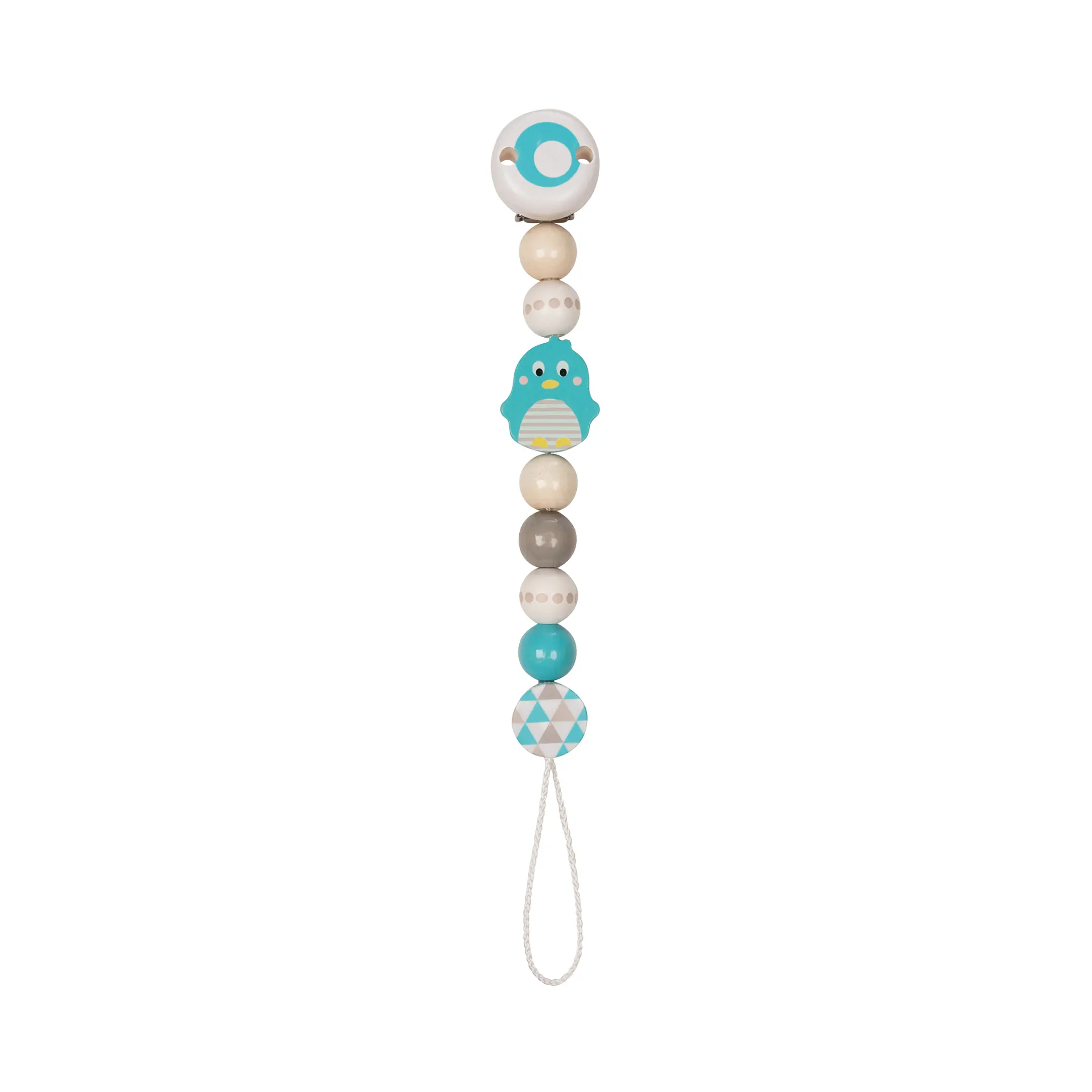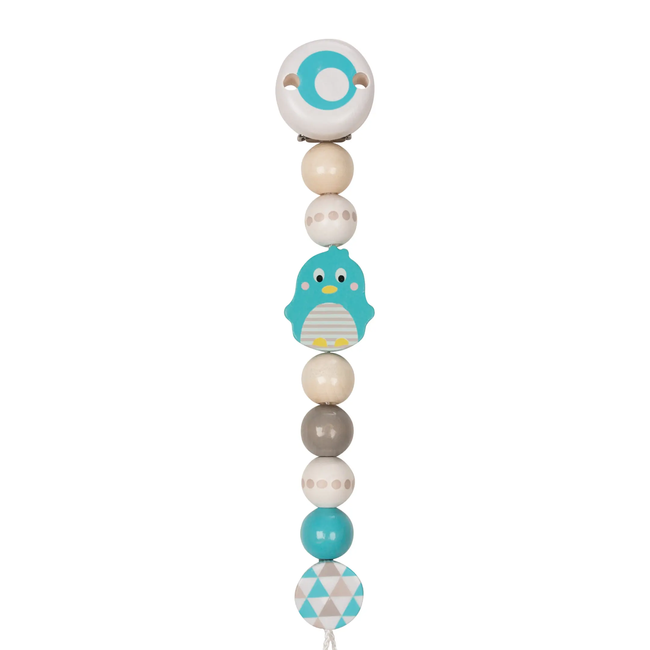 The pacifier chain pinguin from HEIMESS is simply clipped onto baby clothing, so the pacifier is not lost. And neither is baby's good mood.