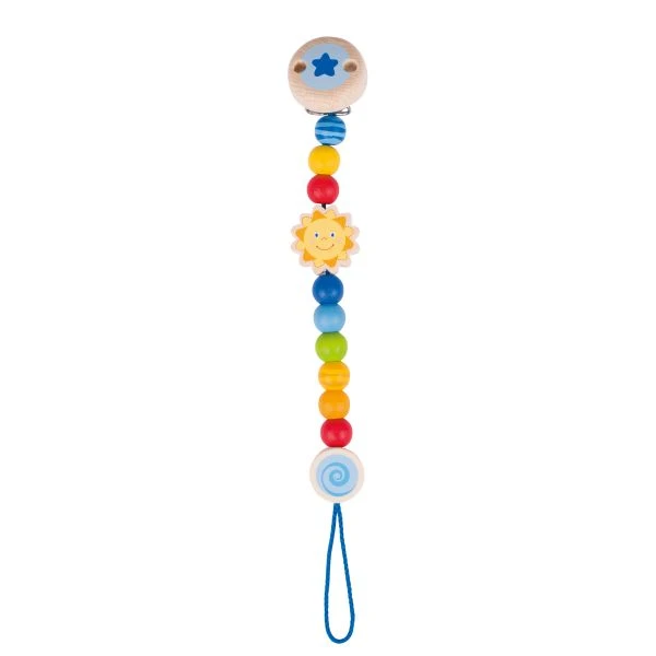 The pacifier chain sun from HEIMESS is simply clipped onto baby clothing, so the pacifier is not lost. And neither is baby's good mood.