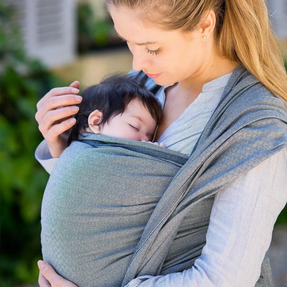 The baby sling from Hoppediz is an all-rounder - a sling for all sizes and all ages from the first week to the end of the babywearing period. The jacquard fabric is evenly stretchable and cross-elastic, so it keeps your baby safe and secure. It offers you a variety of ergonomic carrying positions: in front of your stomach, on your back and on your hips.