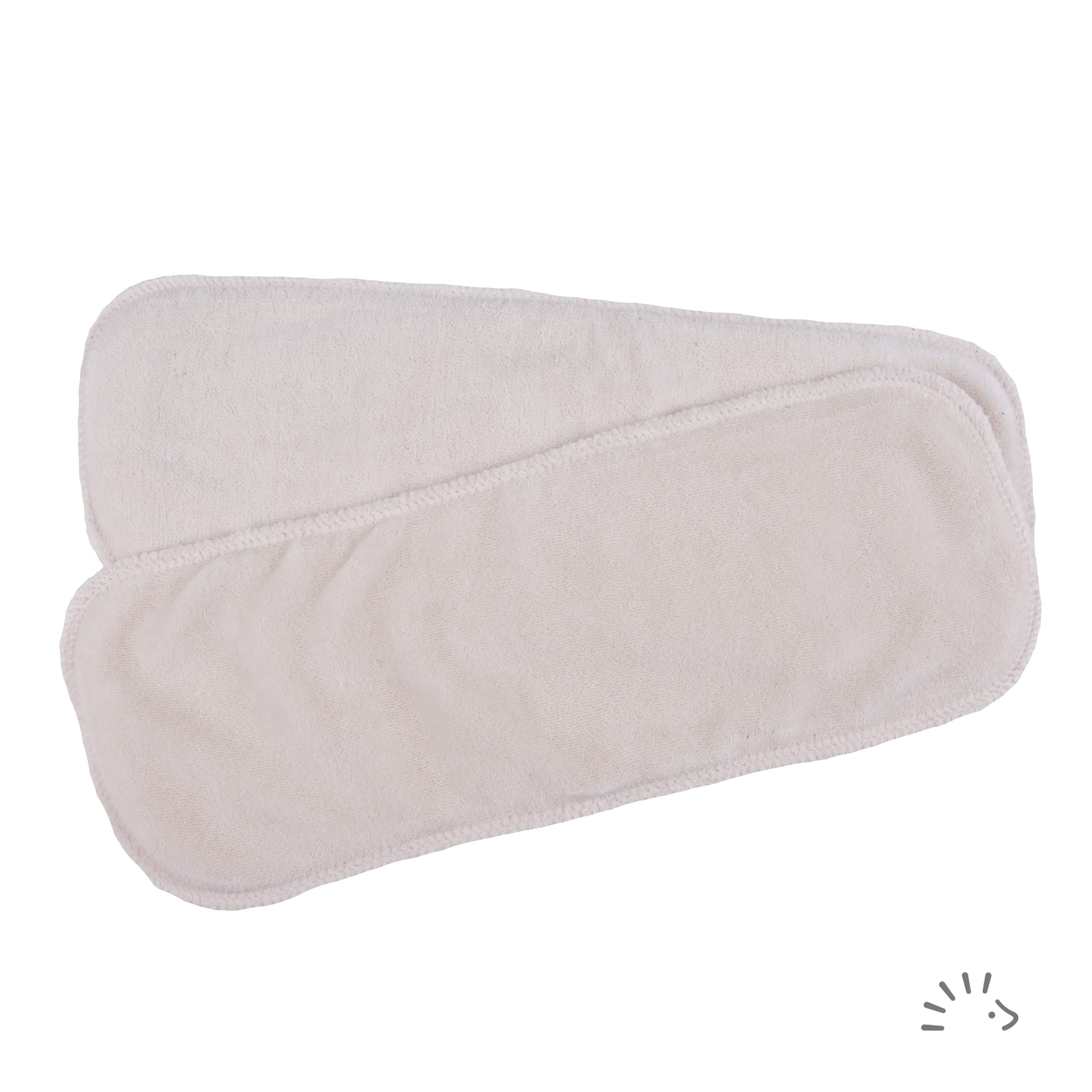 Absorbent inserts supplement any cloth nappy system to increase their absorbency.