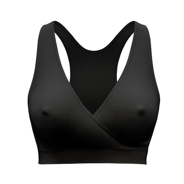 The sleep bustier Keep Cool™ for pregnancy and breastfeeding from medela offers you soft support and dry, cooling and well-fitting comfort. Thanks to the Soft Touch Adaptive Stretch™ technology, the non-wired and seamless sleeping bustier adapts perfectly to your changing body and the racerback design equipped with a breathing zone on the back ensures good ventilation and temperature regulation. Thanks to the crossed design, the maternity and nursing bustier can be opened quickly and easily for breastfeeding.