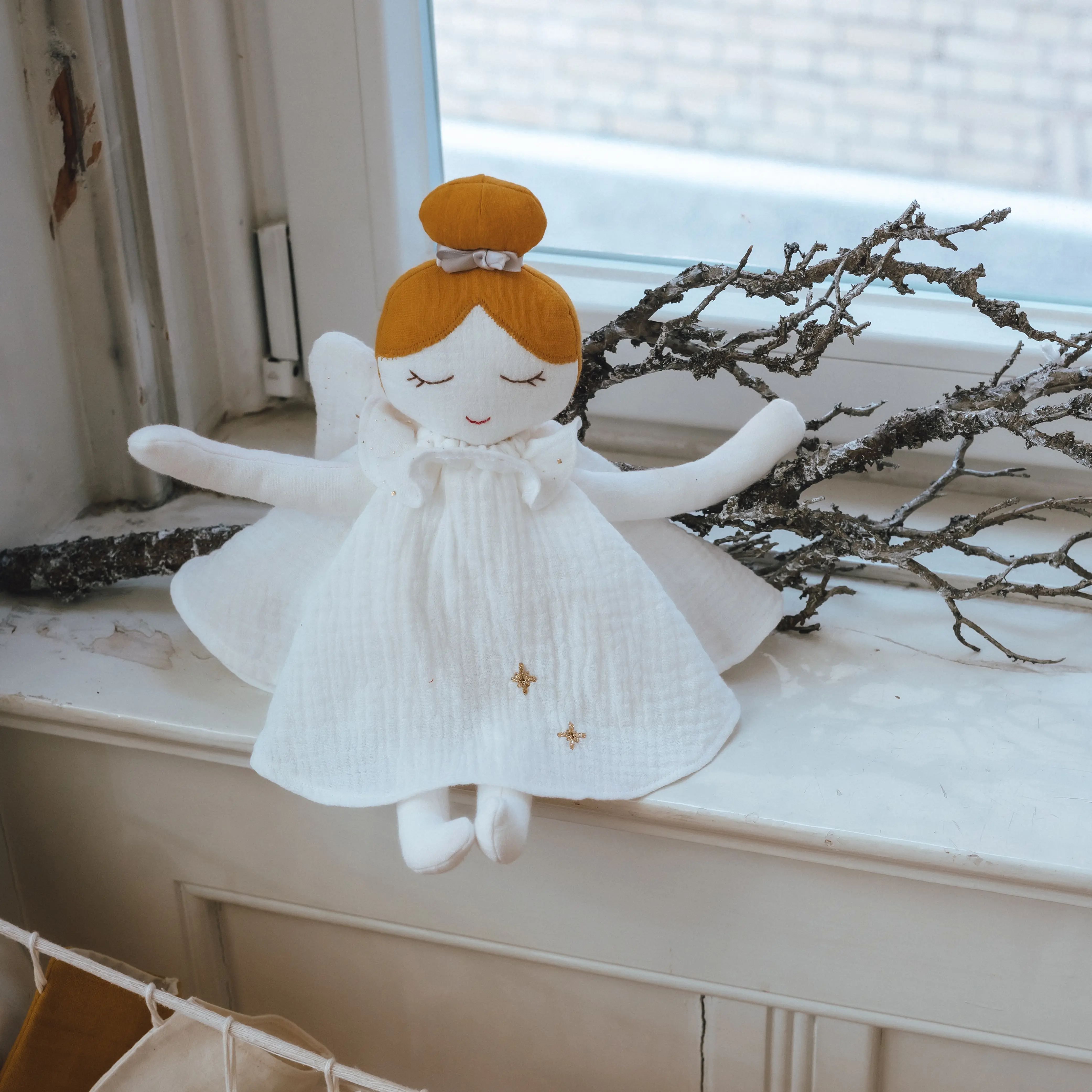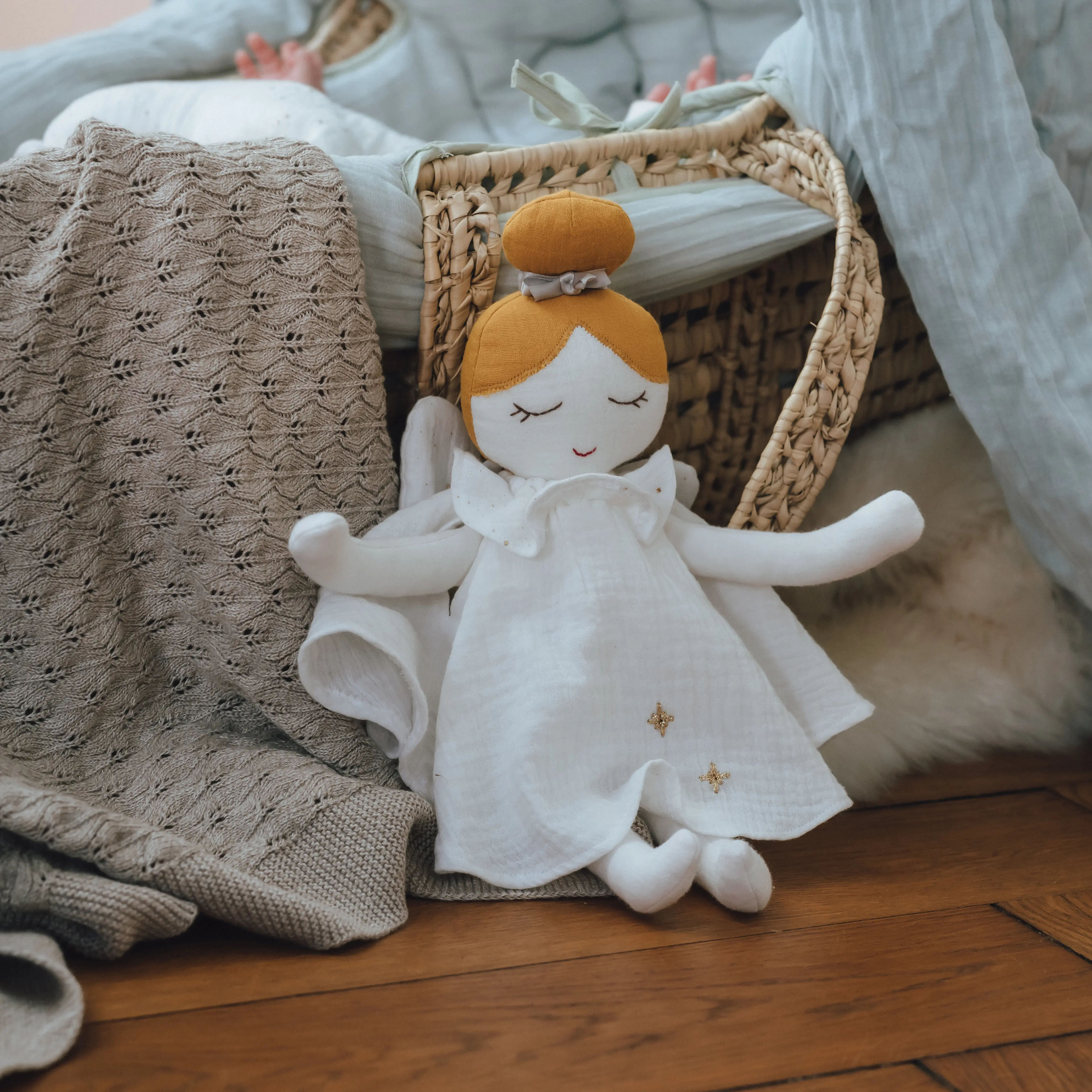 The doll angel is the perfect gift for a newborn. An angel to guard and care for your little one. The angel is both a cuddly doll and perfect for play and hugging, and a cute little safeguard. It is made of GOTS certified organic cotton and is suitable for babies and children from +0 months.