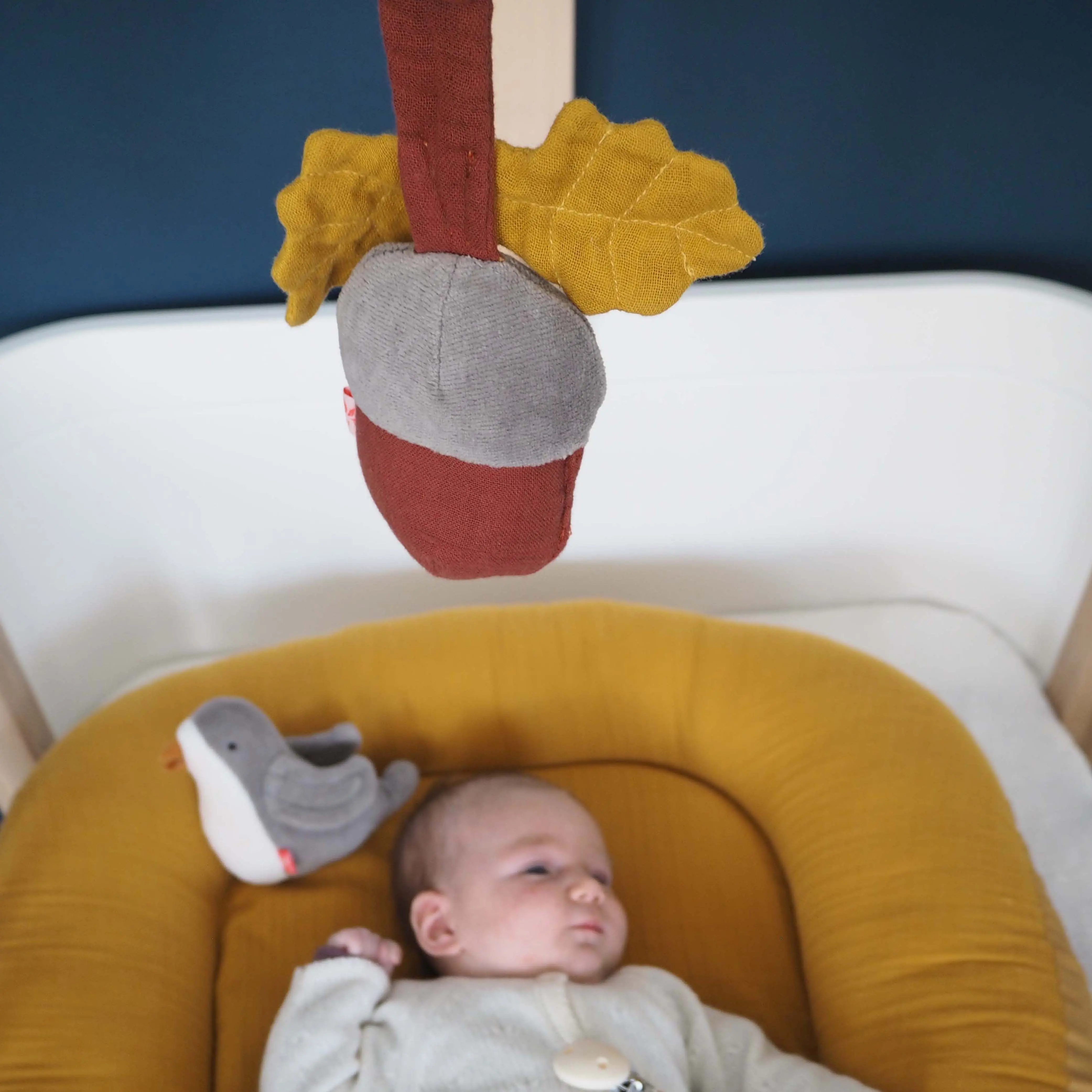 There's lots to explore on the ground in the forest, like this cute acorn. The lined, fluffy acorn can be attached to many baby outfits with the practical velcro fastener. The cute rattle stimulates all the senses, such as haptic and acoustic perception, at the same time. Your baby can grab the rattle, shake it and enjoy the sound.