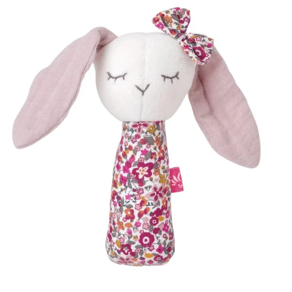 Press please! The squeaker rabbit with its colorful details made of various ecological materials gives the little ones lots of fun and entertainment. It promotes haptic discovery and stimulates all senses. Due to its light weight and narrow shape, it can be easily held by the little hands and is therefore the perfect birth present.