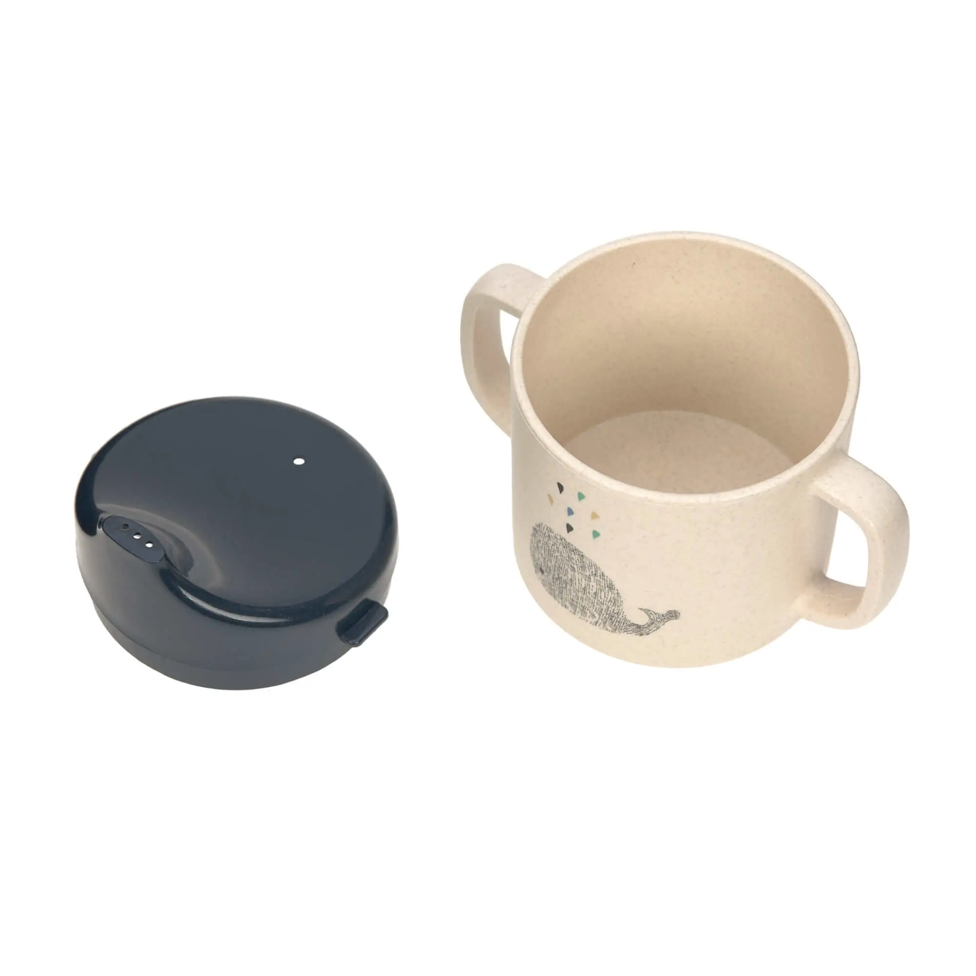 In love with nature: LÄSSIG’s Little Water children’s tableware collection includes the sippy cup with the little whale. Thanks to the practical lid with an opening for drinking, it’s easy for children to learn to drink. The two handles on the sides enable those little hands to get a firm grasp of the cup and the non-slip ring on the underside provides a better grip on the table. All items in the set are not only BPA-free and very lightweight, but also dishwasher and microwave safe. They are made from a mixture of polypropylene and cellulose and are therefore more sustainable and resource-saving in their production than conventional polypropylene.