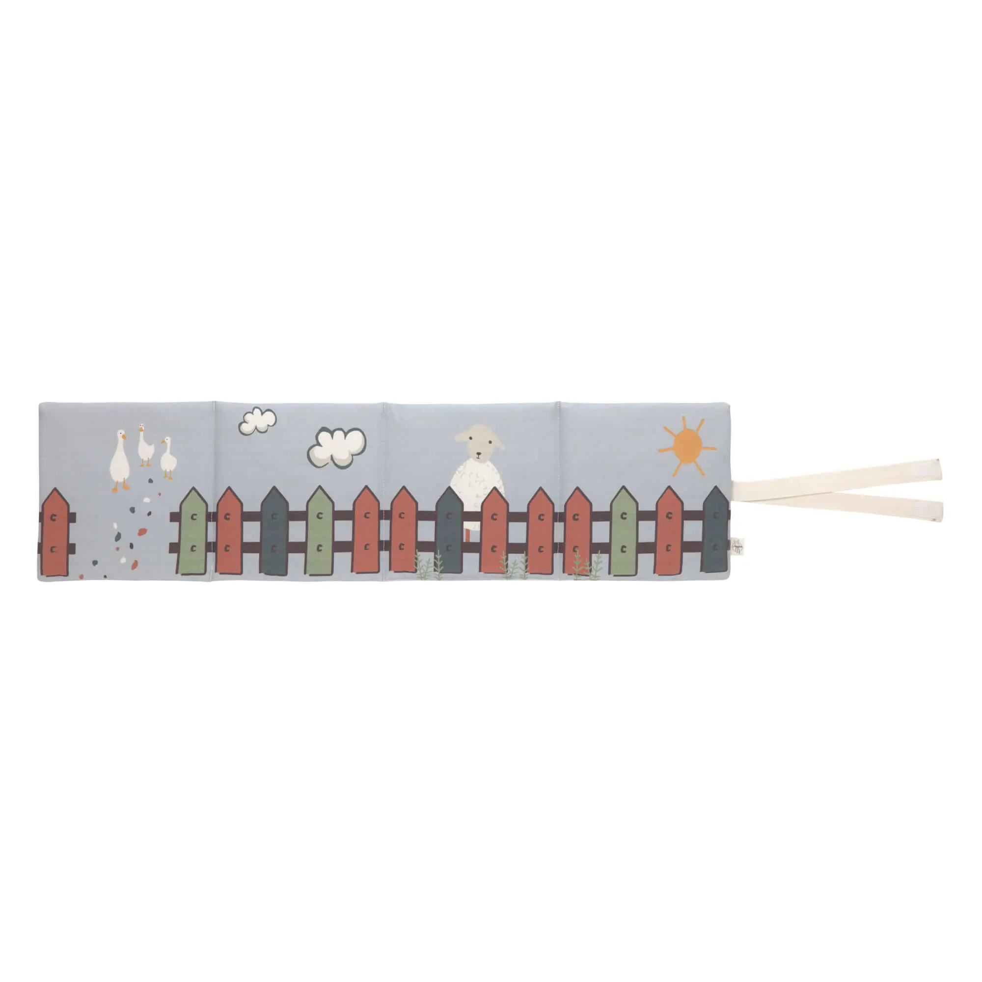 It can be completely unfolded for play and exploration and easily closed again and with the ribbon and Velcro fastener.