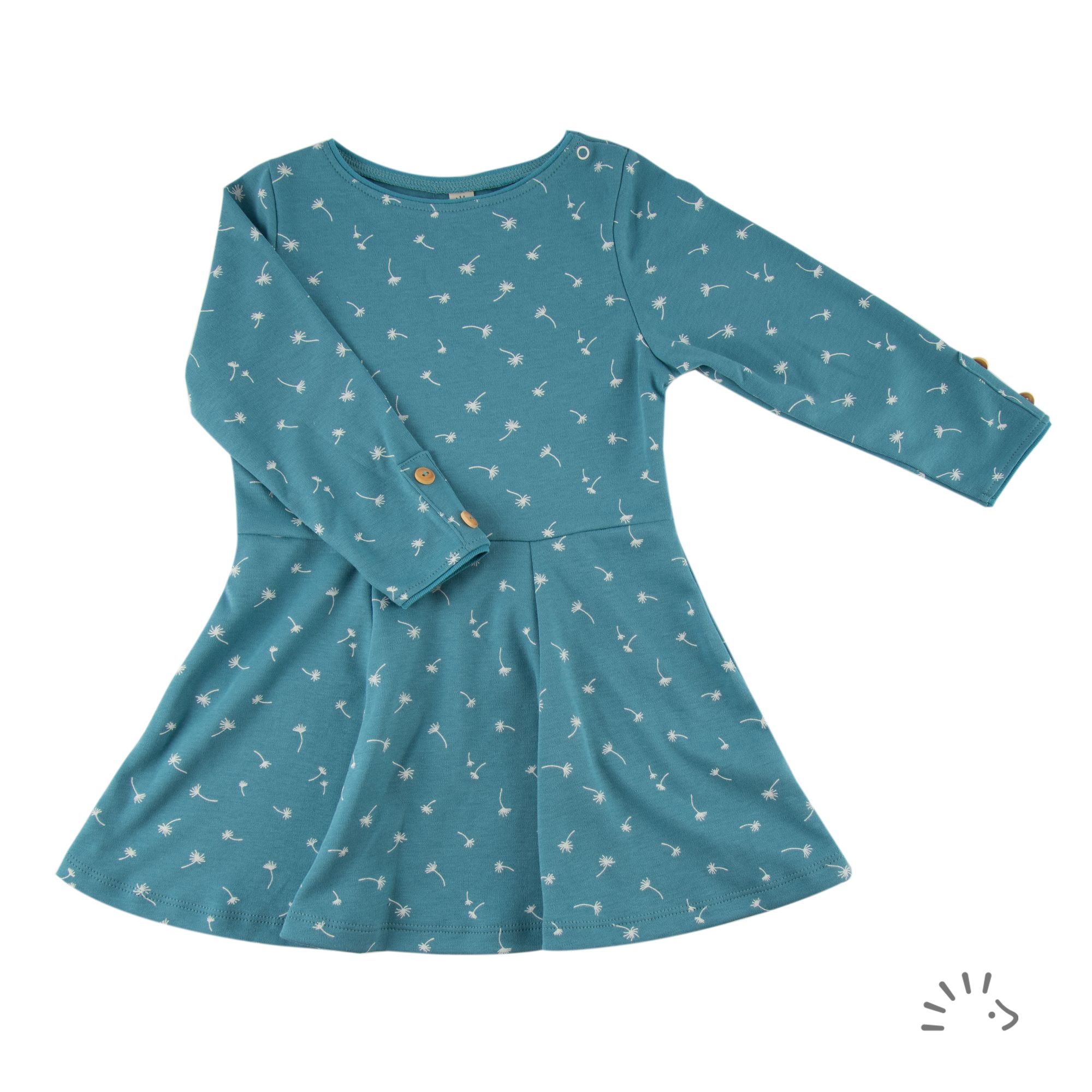 The long sleeve dress is a pretty, comfortable swivel dress made from certified interlock fabric. With decorative buttons on the sleeves. Snap buttons on the shoulder make this dress easy to put on and take off.