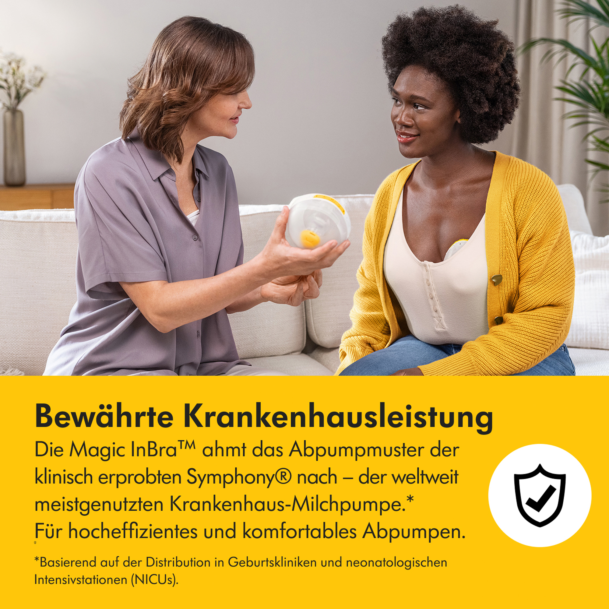 The Magic InBra™ by Medela is the next generation of wearable breast pumps – developed based on over 60 years of research. It combines maximum efficiency with comfort, discretion, and cutting-edge technology.