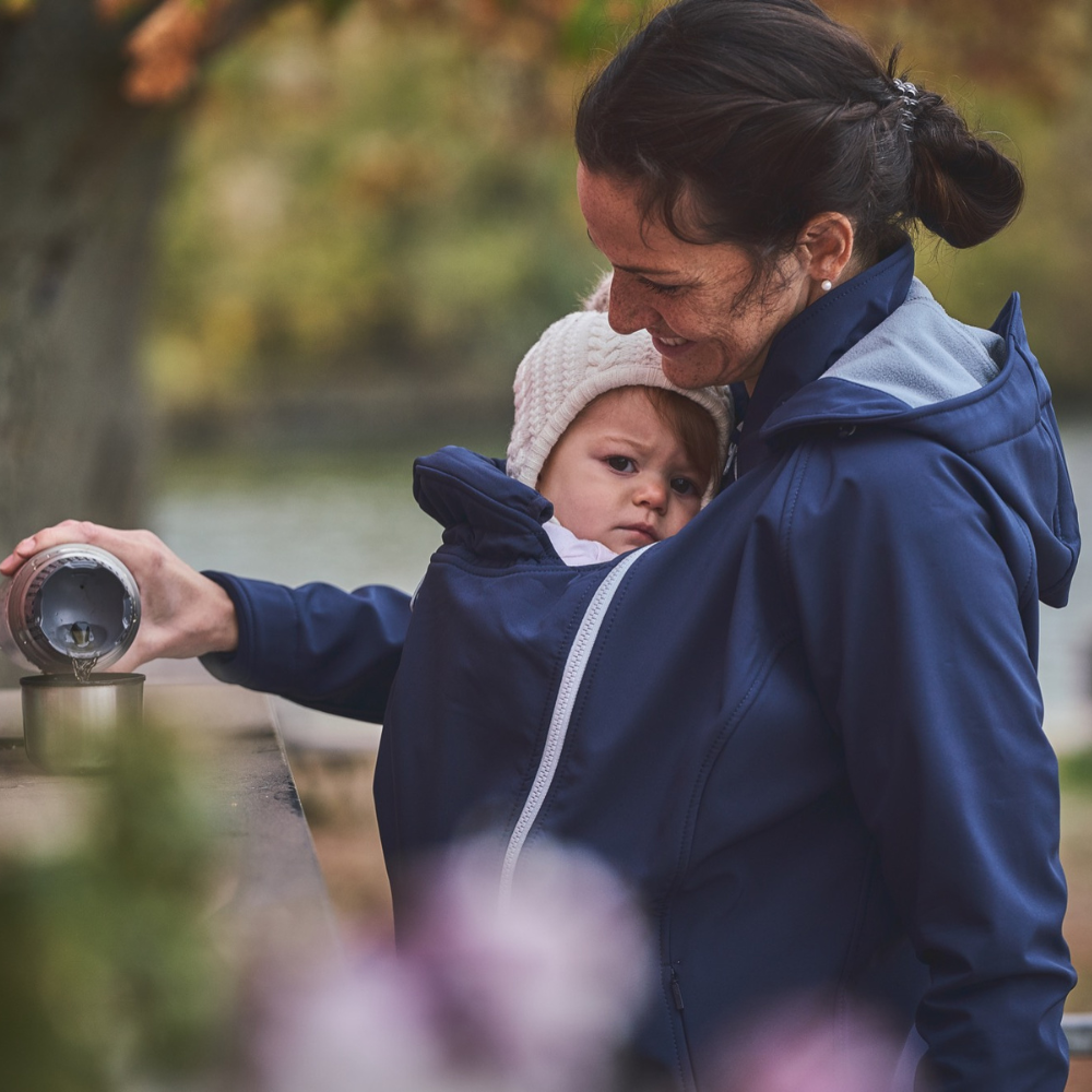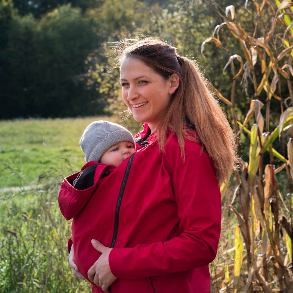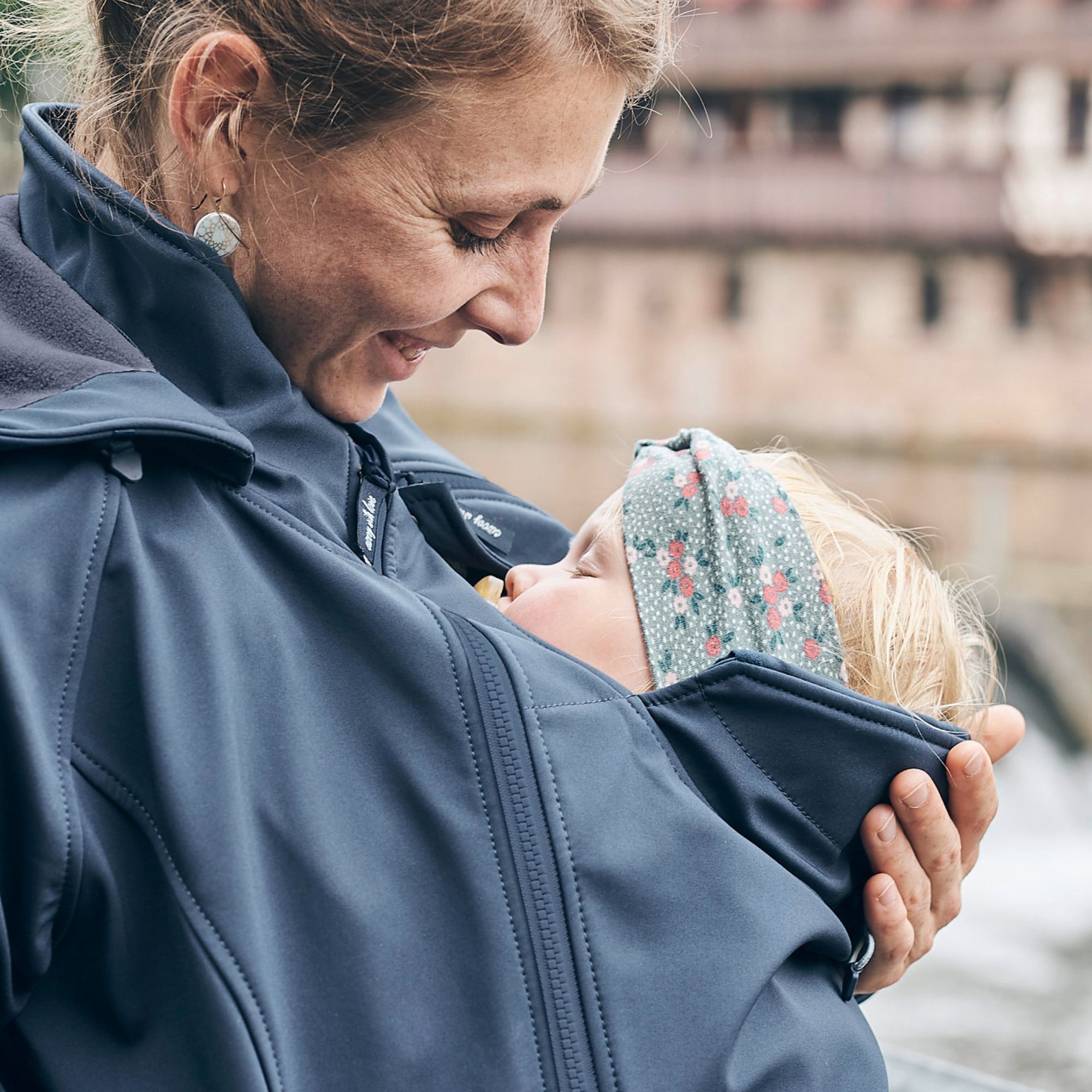 The Allrounder softshell babywearing jacket is a versatile jacket for pregnancy, babywearing and beyond. The flexible jacket is intended for all weather conditions, for the transitional period or with an additional layer of clothing also for the winter. The material consists entirely of recycled polyester and is completely waterproof, windproof, breathable and easy to clean.