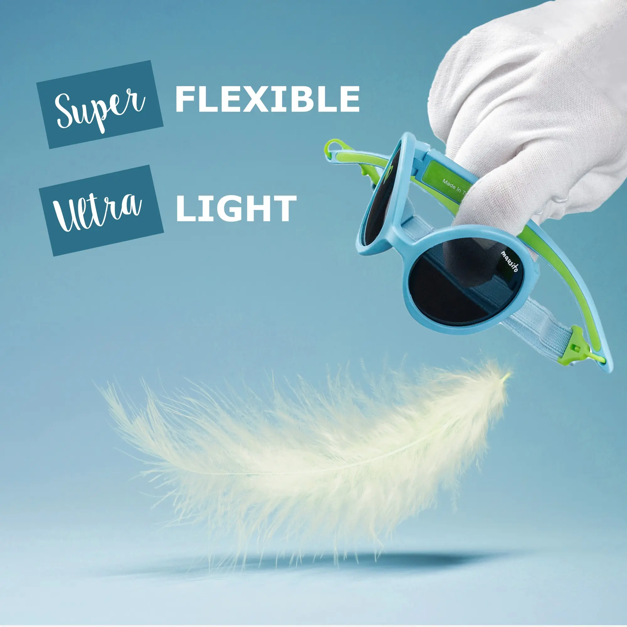 These cool sunglasses come with a removable and adjustable elastic headband. The frame made of TPEE rubber withstands the highest loads and offers maximum comfort