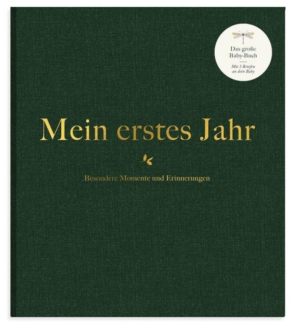 A very special, high-quality baby album, linen-bound and with gold-colored lettering.