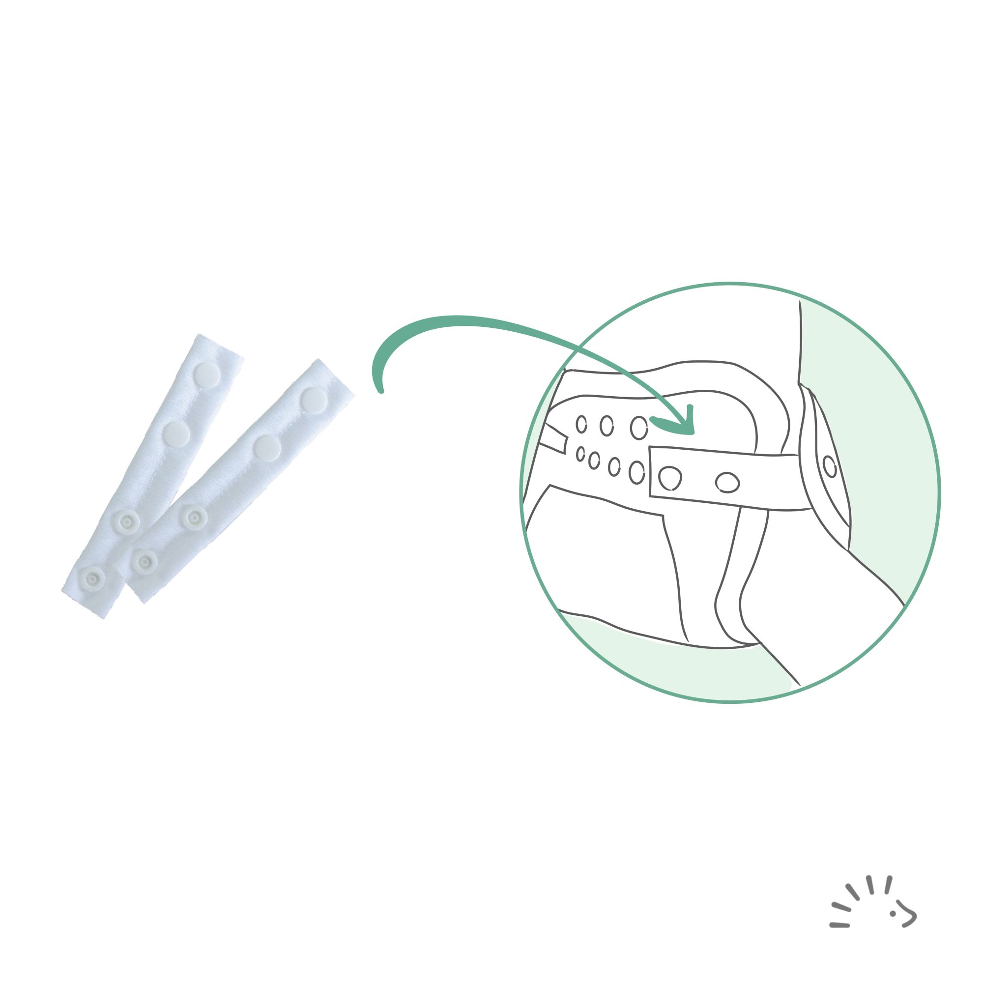 The practical extension for the OneSize, MaxiSnap, MiniSnap and Snap2Fit allows longer size adjustment by attaching the extensions to the hip.