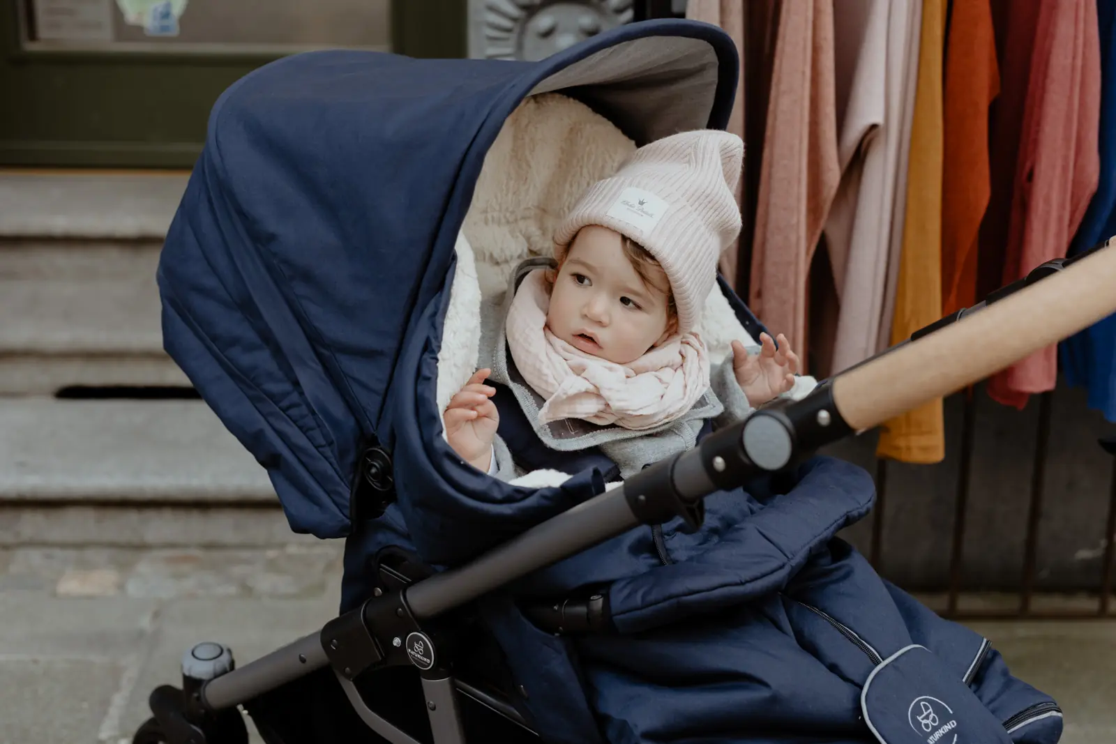 The footmuff for prams that grows with the child from 0-3 years old. Thanks to a simple zip system, the Naturkind cosy footmuff adapts to the child’s height and so can be used for a long time. The head section can be tightened and offers protection from wind and weather. Reflective seams ensure increased safety when going for a walk.