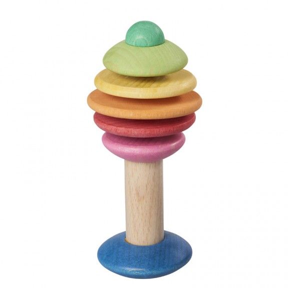 This beautiful rattle is shaped like a tree. The disks of the rattle bend and click together.