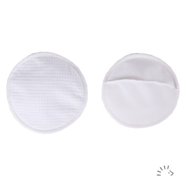 The special Stay-Dry material rapidly conducts liquid into the knitted terry- core of the nursing pad. In this way the skin stays dry and hygienic. The core is absorbing the breast milk and the waterproof outer material keeps the liquid inside the nursing pad. The pads are suitable for heavy milk flow or during the night and protect clothes from unsightly spots.