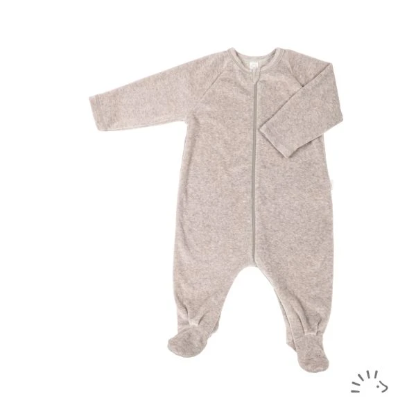 Our overall with zip is characterized by its velvety velour that is made from organic cotton. Due to the stretchable material freedom of movement is guaranteed. The zipper placed on the front runs down to one leg. Zipper can be opened from both sides, which enables easy dressing but as well as nappy changing. With closed feet and the cosy material, overall with zip is ideal for the cooler season.
