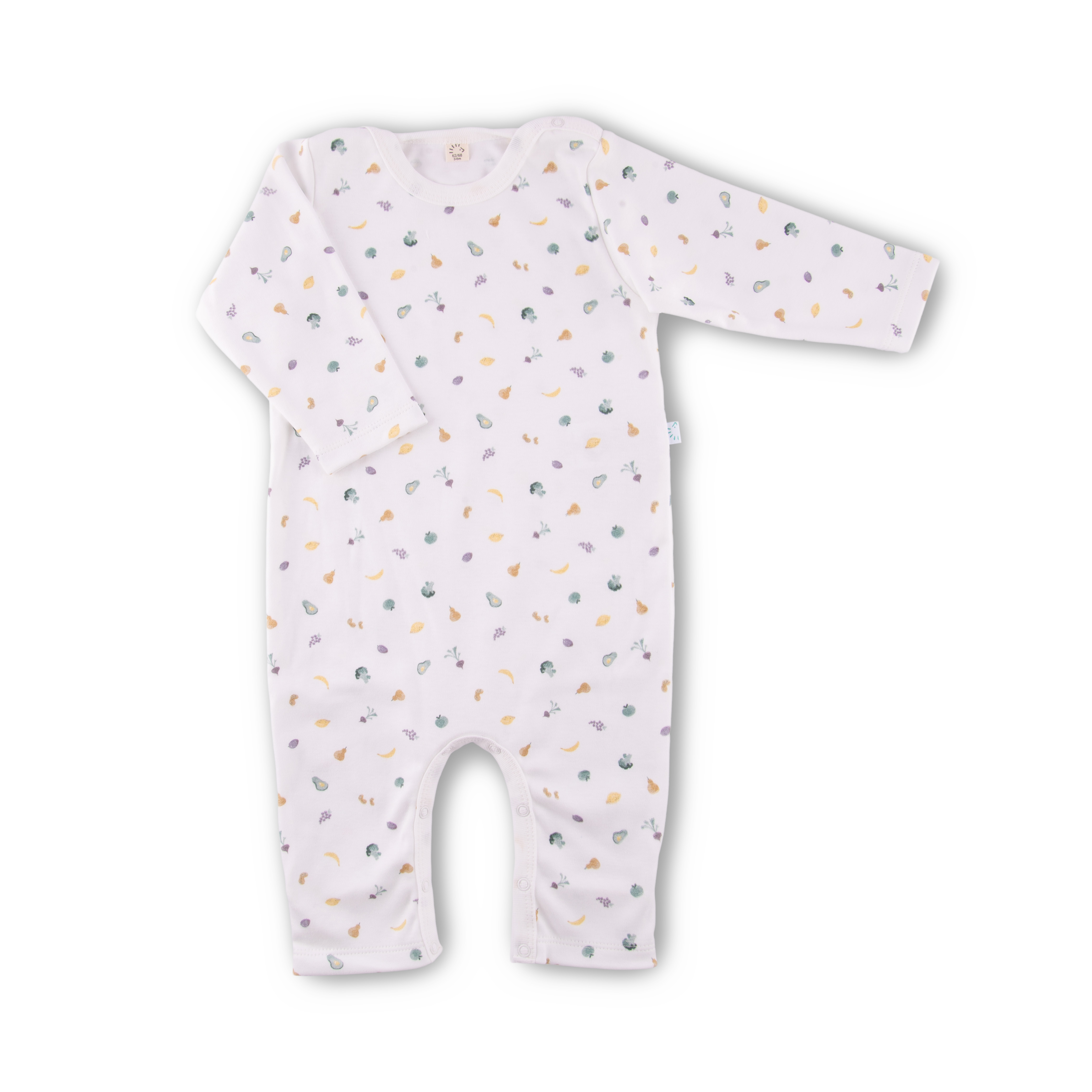 Our overall without feet made from certified cotton interlock is a casual Basic with long sleeves suitable for every day. Because of its open legs, romper is suitable for each foot length. Feet can also be closed by attached cuffs, which is very advantageous while sleeping for example. Snaps on both shoulders and in the crotch ensure easy dressing. The soft and skin-friendly interlock-material nestles comfortably on baby’s skin.
