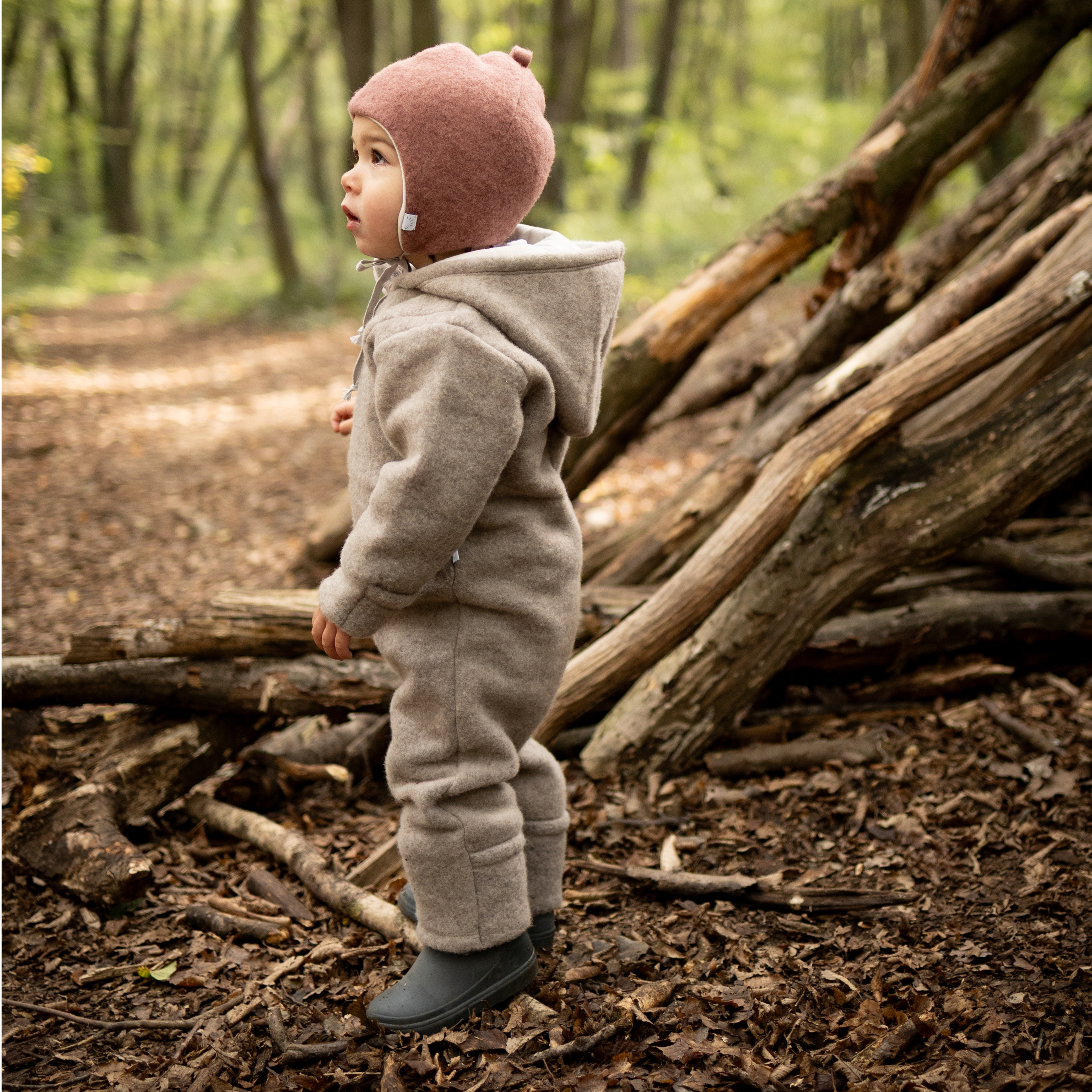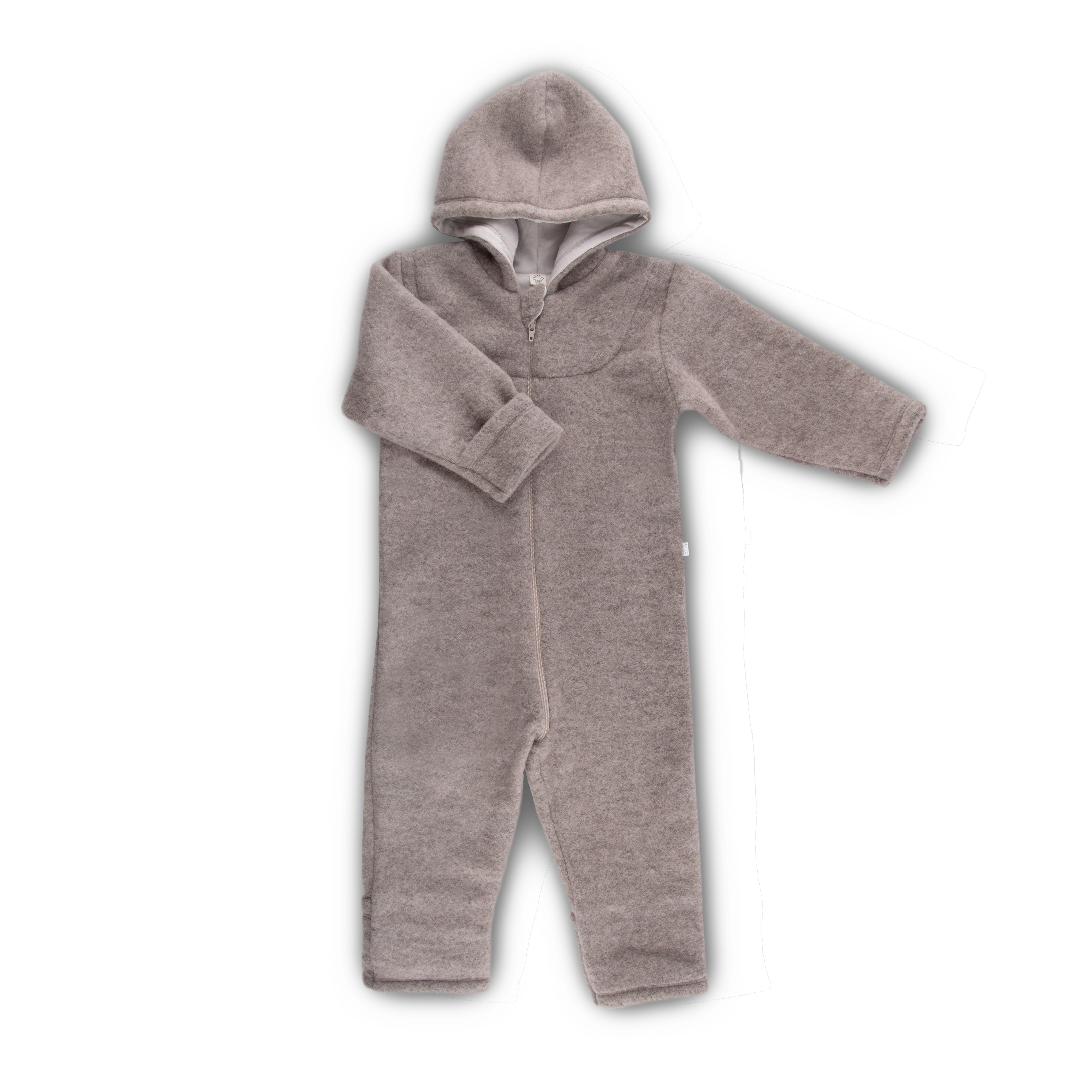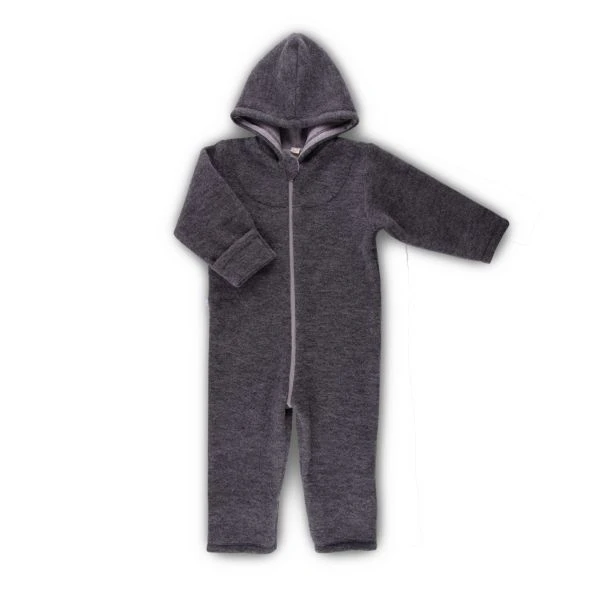 The overall wool fleece from certified wool is ideal for the cold season. Sheep wool has always been appreciated for its natural thermos-regulating effect. Our wool fleece is being produced according to GOTS guidelines, which guarantees both a fair, low-emission production and animal welfare. A to the rear extended zipper allows easy dressing and undressing. The protective lap on the neck provides secure closing of the zipper without “pinching”. The hood is lined with soft cotton interlock.