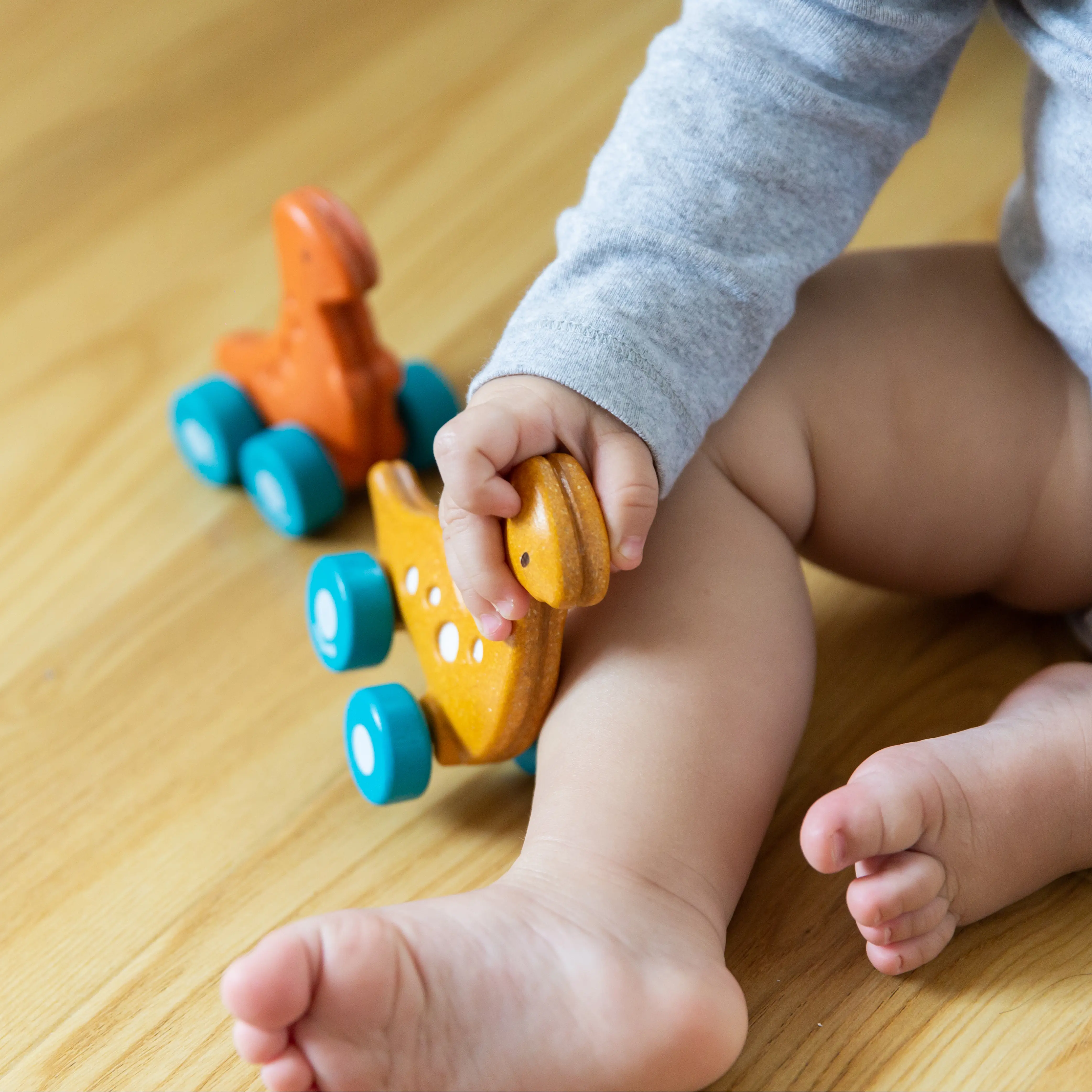 Immerse yourself in the world of dinosaurs with this cute dinosaur vehicle from PLANTOYS. The Dino car is made of natural rubber wood, is completely free of harmful substances and has rounded edges.