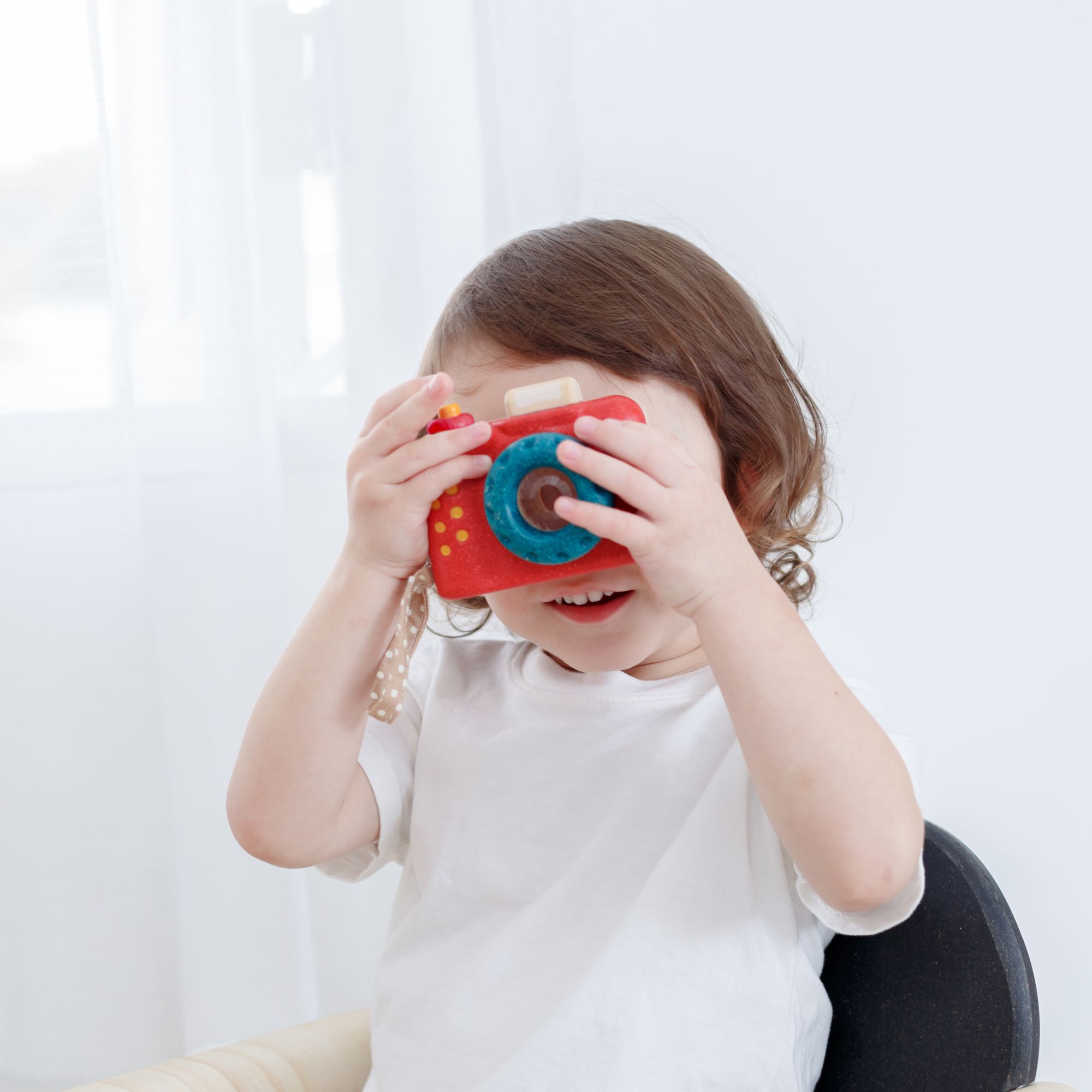 Take pictures like mom and dad- With the toy camera from Plantoys you can discover the world through a kaleidoscope. The handy camera was specially designed for small children's hands. A safety loop prevents the camera from falling. Click ... The shutter release is easy to press and the kaleidoscope lens rotates like a real camera. Suitable for children from 18 months.