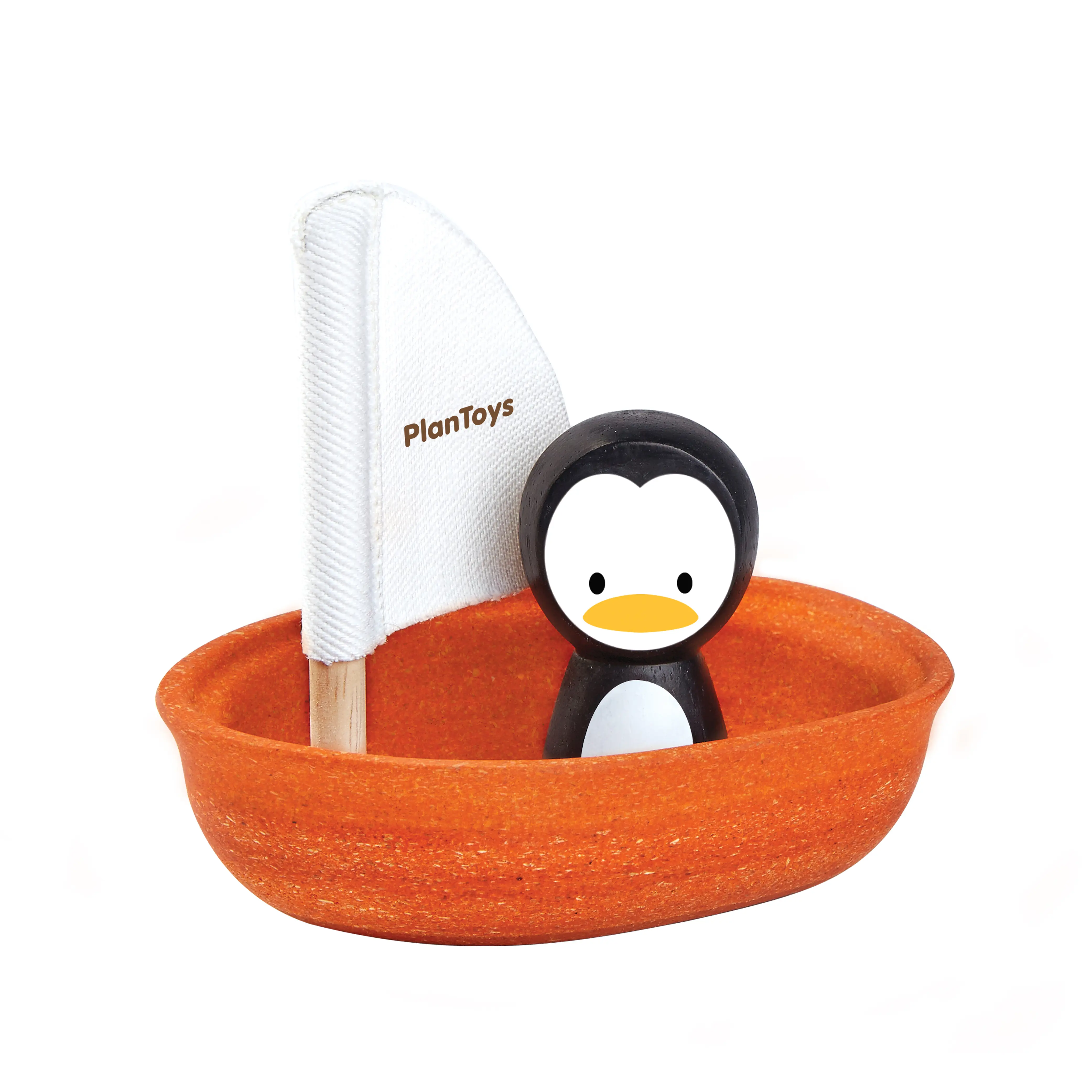 With the small sailing boat and the funny penguin, adventures in the bathtub are guaranteed. A great plastic-free bath toy, made of rubber wood, suitable for children 12 months and over.