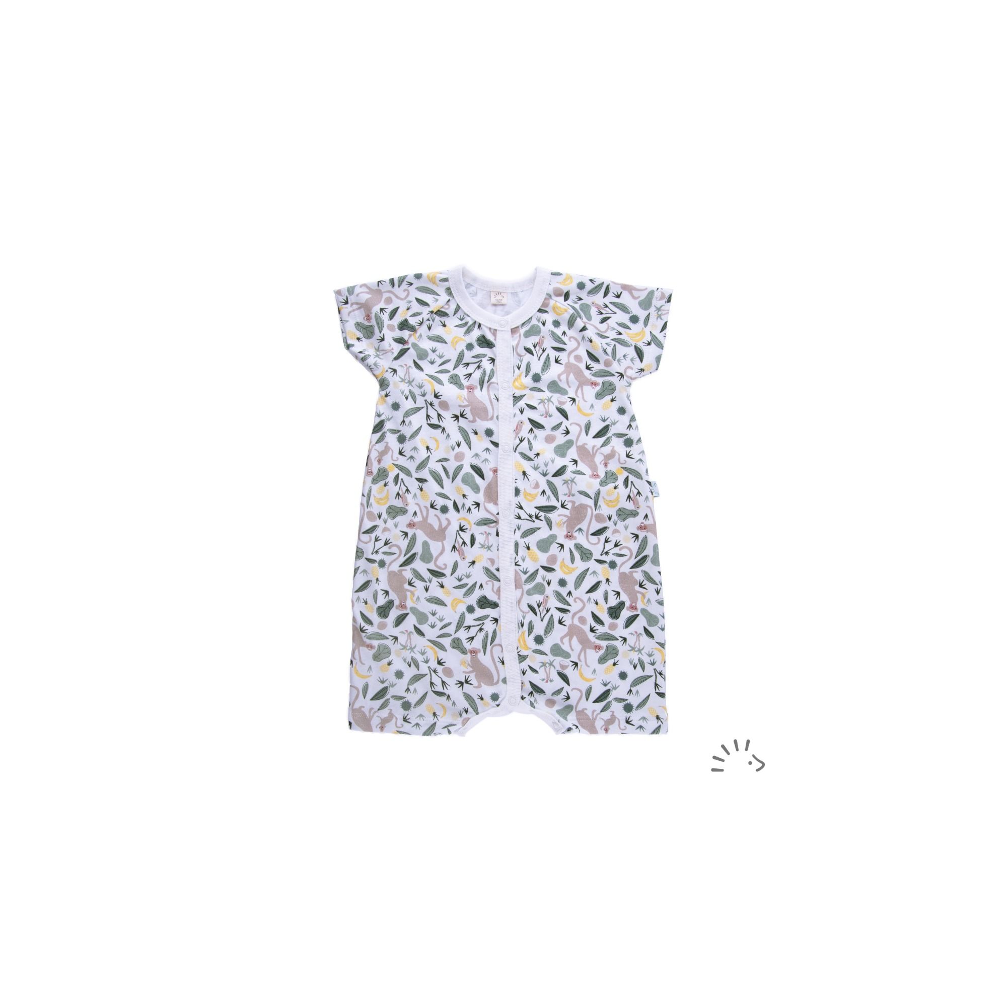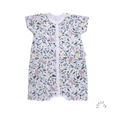The playsuit is a practical one-piece suit made of summery, certified single jersey and is intended for really hot days. Extra wide and comfortable cut for high freedom of movement. With a practical snap button strip on the center front and in the crotch for quick dressing and undressing - practical when changing nappies.
