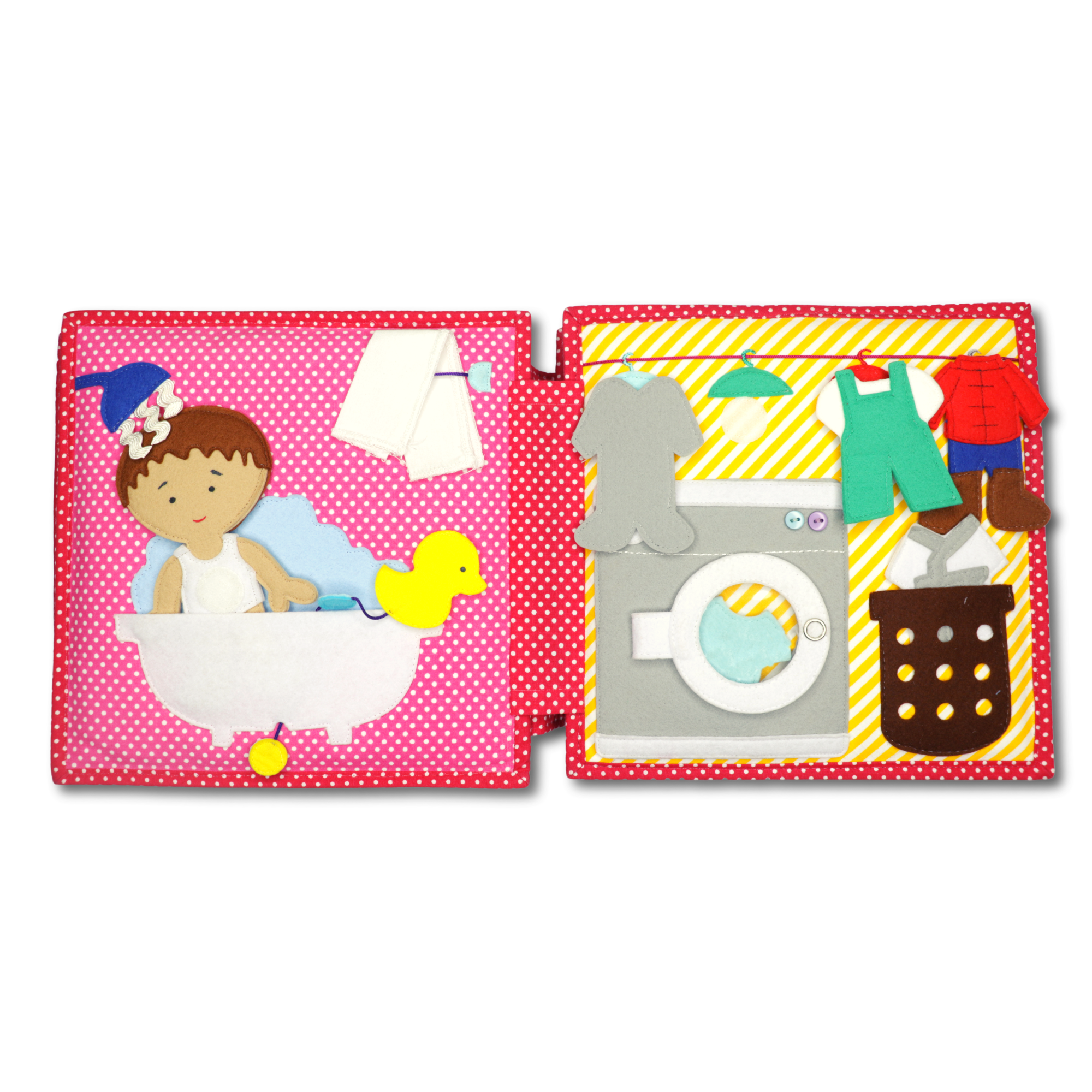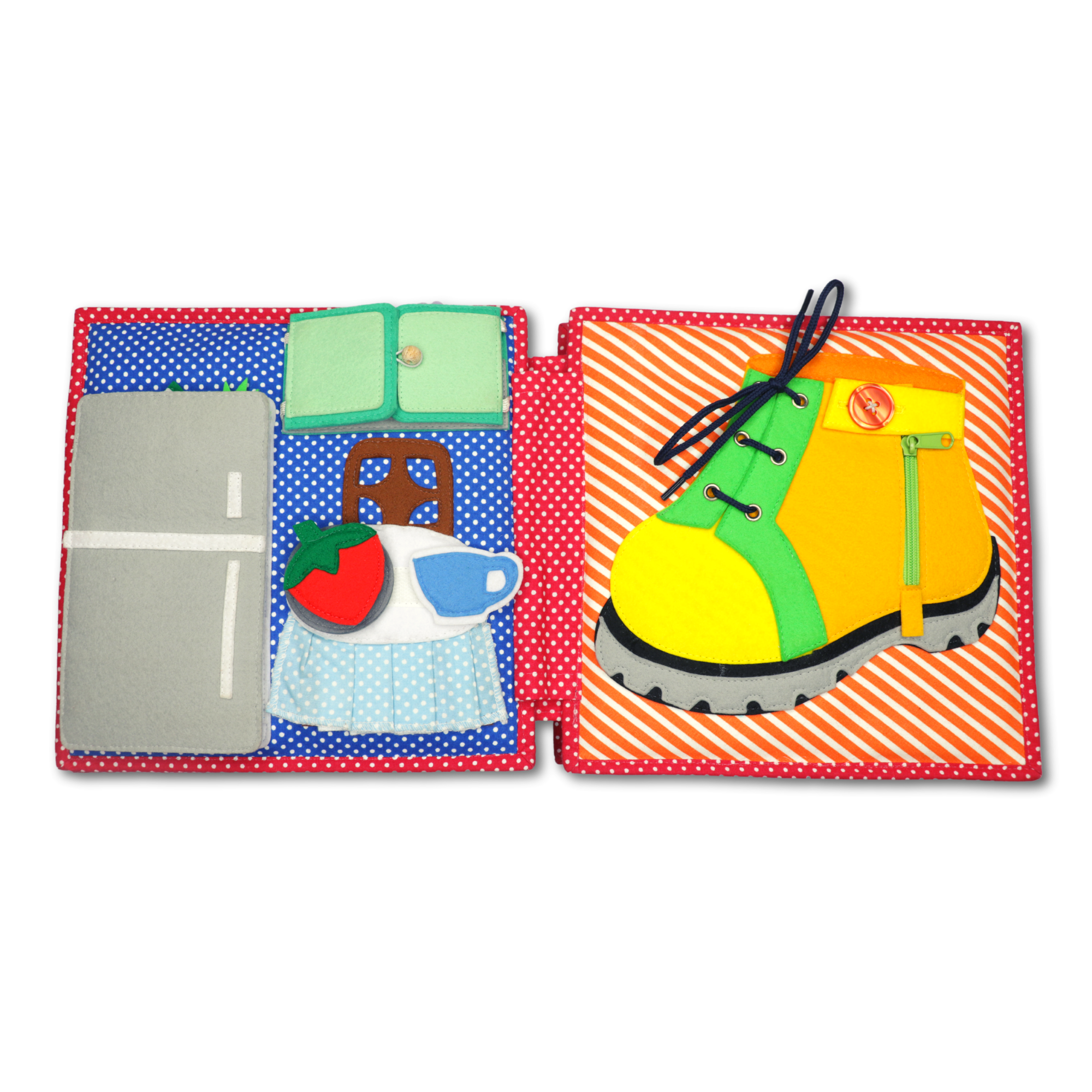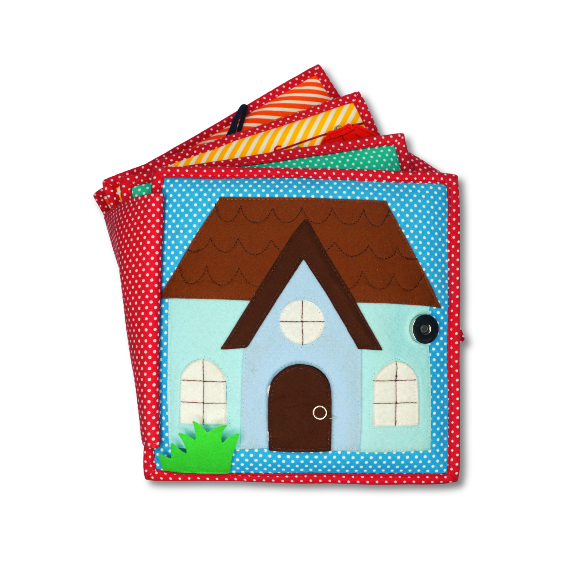 The Quiet Book Hey You! is a wonderfully designed fabric book with six pages to play with. This book promotes eye-hand coordination, fine motor skills and logical thinking. The Playbook Hey You! brings children closer to everyday life and daily routine in a playful way.