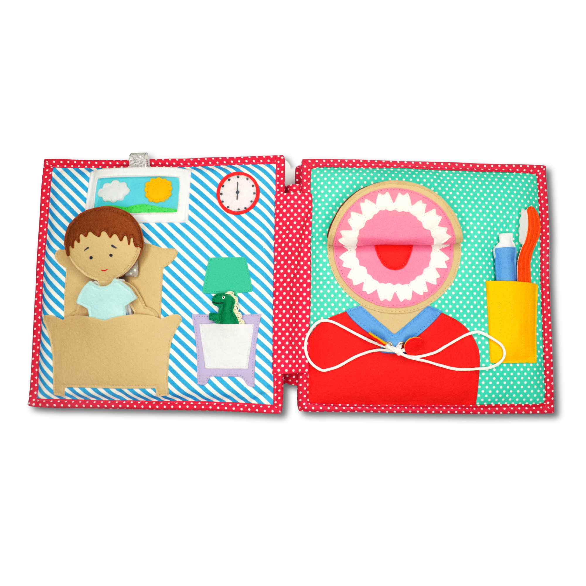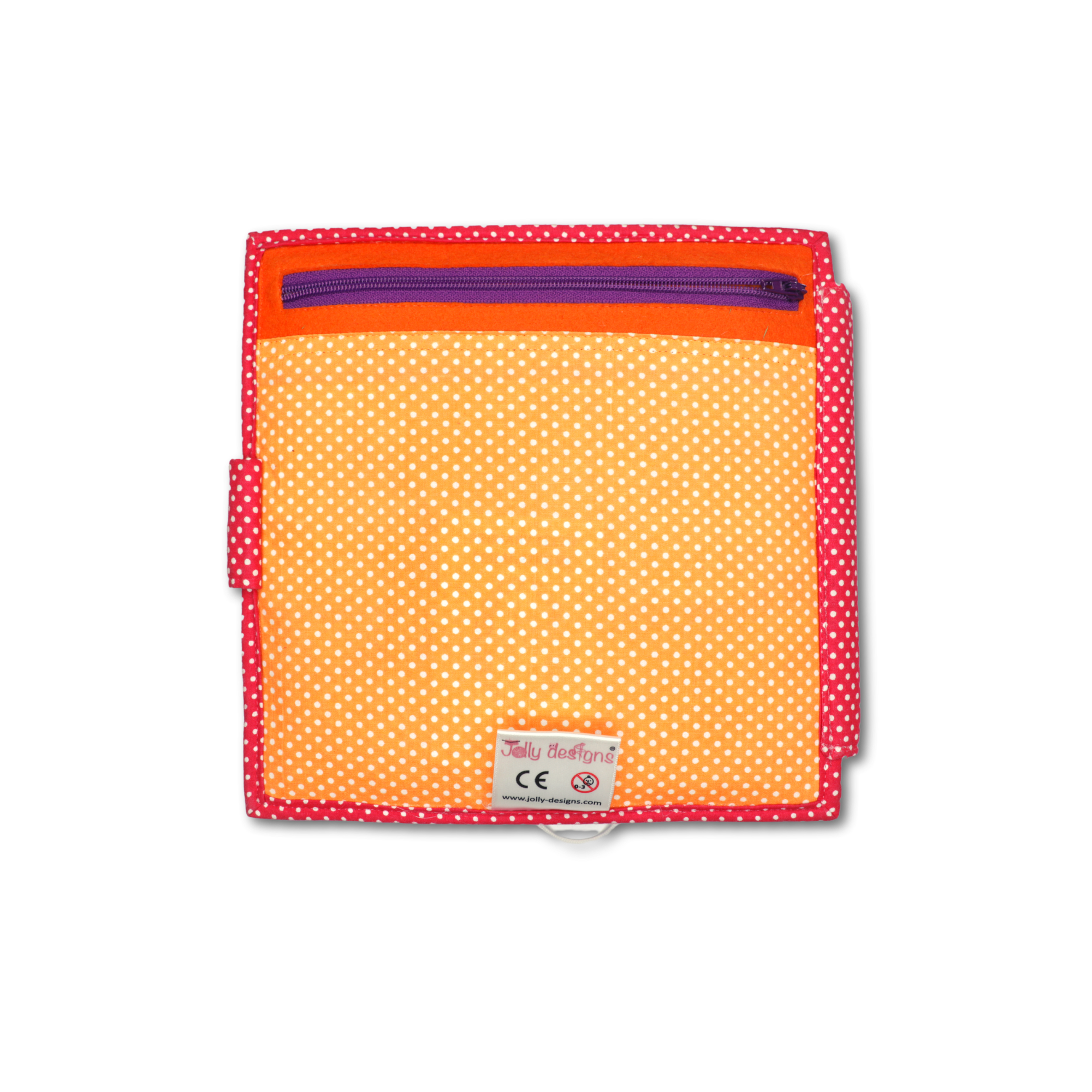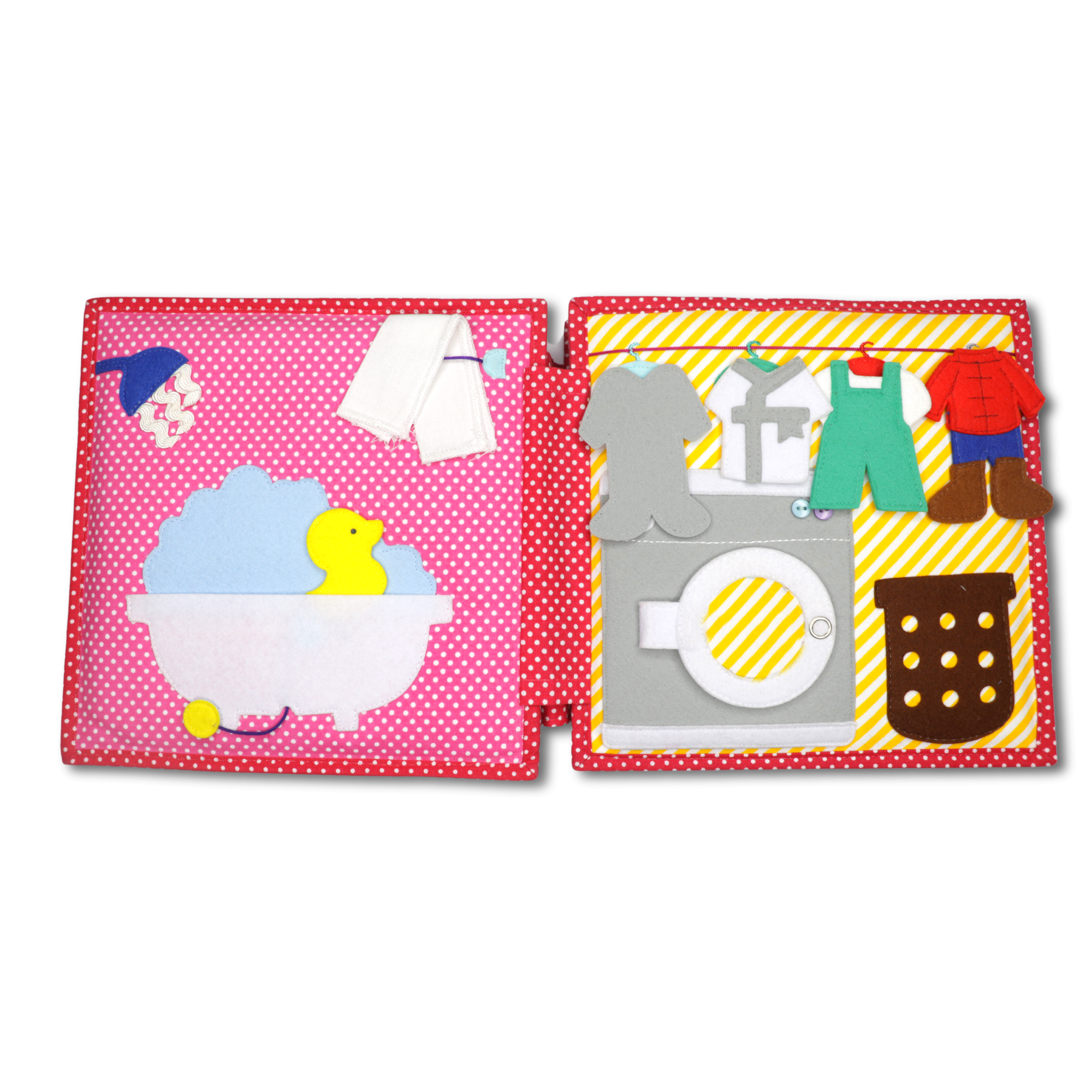 The Quiet Book Hey You! is a wonderfully designed fabric book with six pages to play with. This book promotes eye-hand coordination, fine motor skills and logical thinking. The Playbook Hey You! brings children closer to everyday life and daily routine in a playful way.