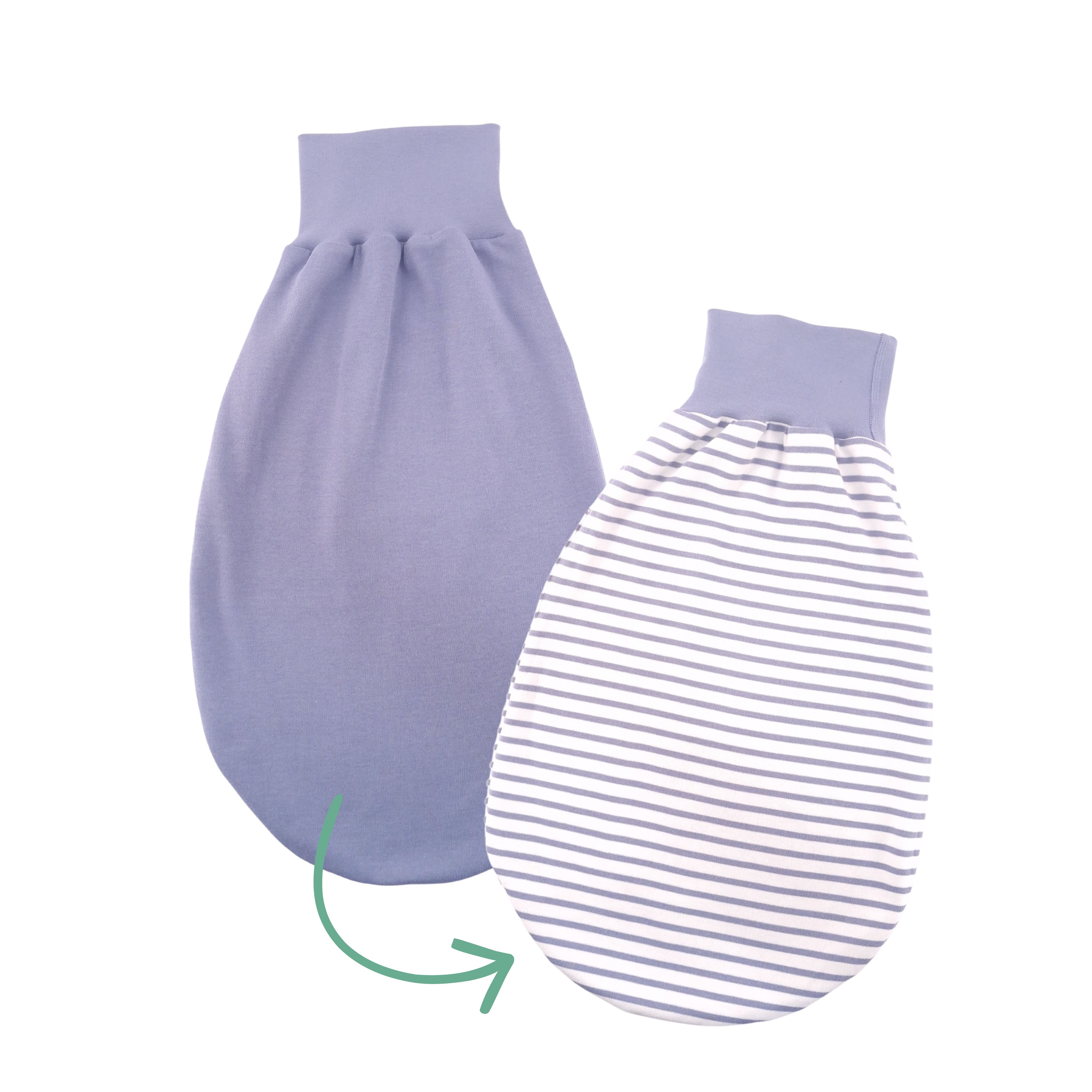 The Romper Bag Reversible Interlock made from certified organic cotton is ideal for the favorite activity of many babies: kicking with bare legs.