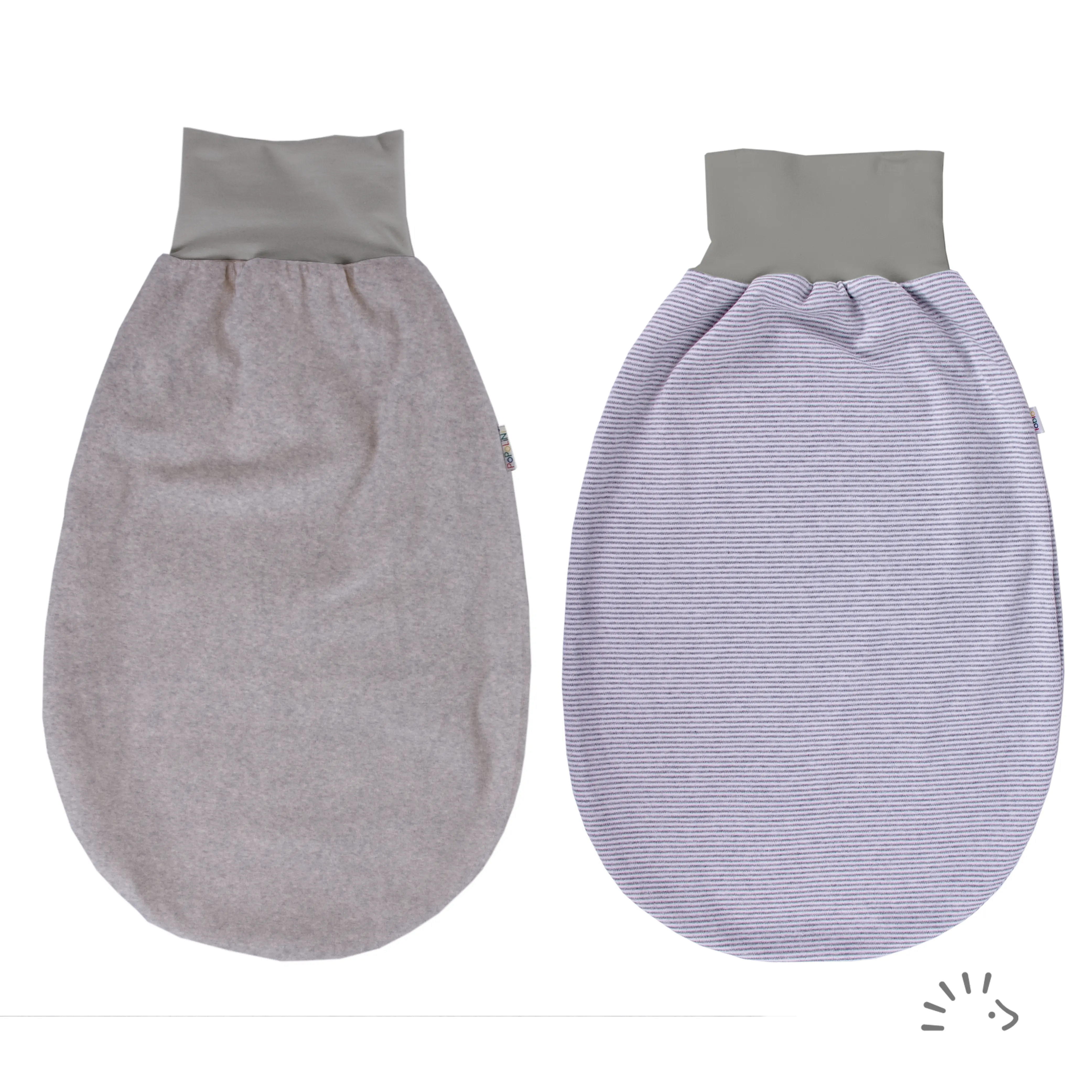 The romper bag reversible velours made from certified organic cotton is ideal for the favorite activity of many babies: kicking with bare legs. One layer Velours and one layer Interlock. The special fit ensures enough leg room and warm feet at the same time. Suitable for babies from 0-6 months. A comfortable belly waistband ensures optimal support and comfort.