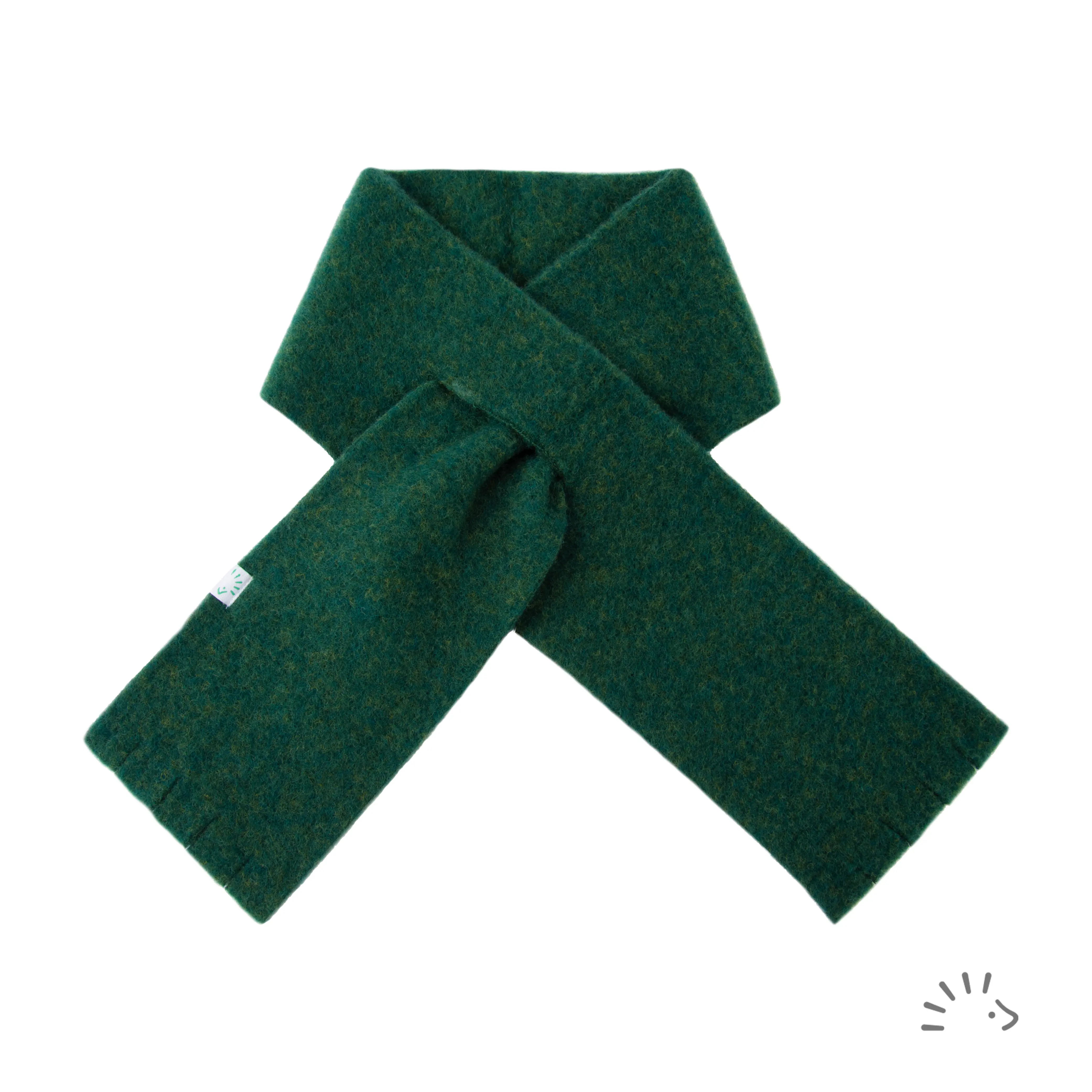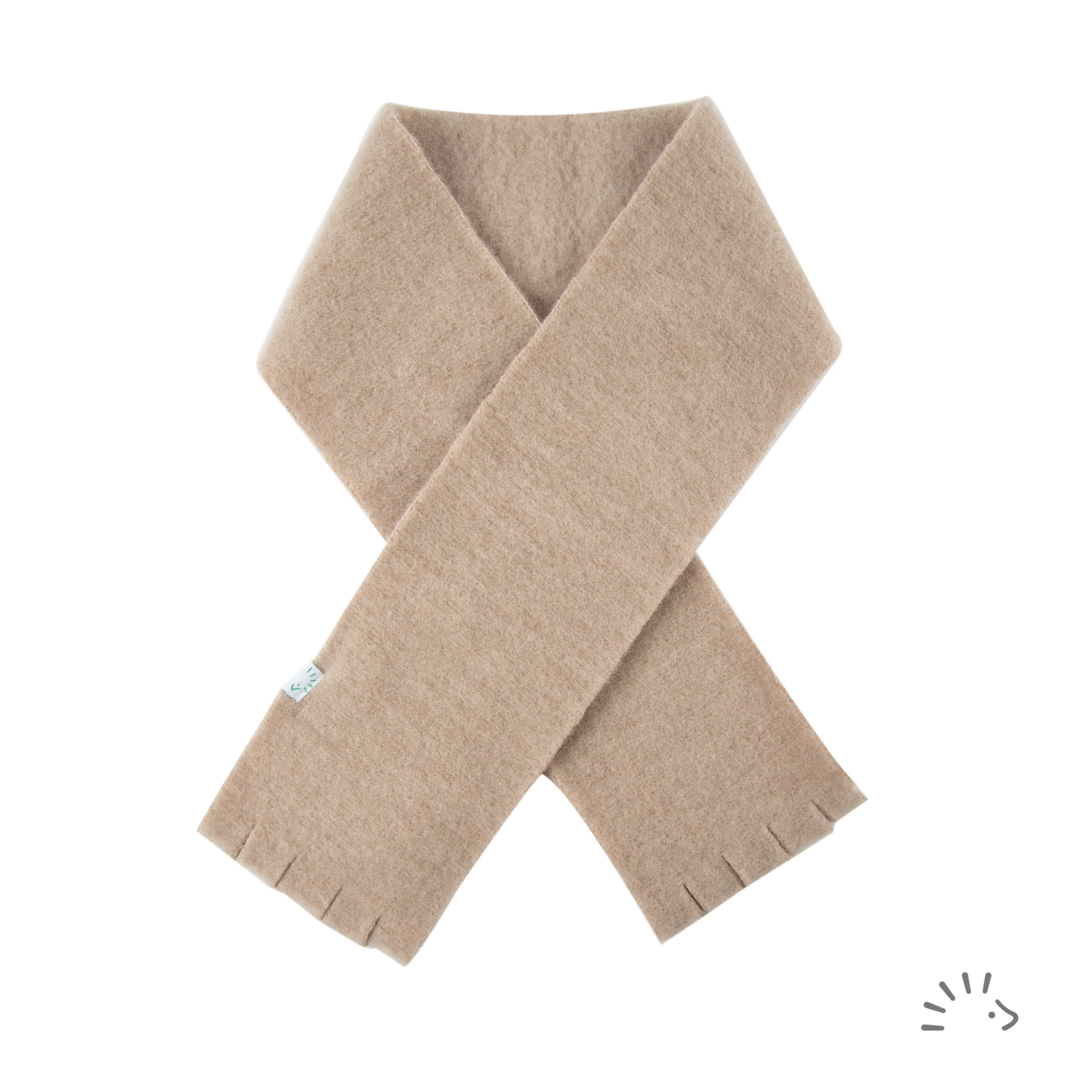 Our fleece scarf made from certified wool is ideal for the cold season. Sheep wool has always been appreciated for its natural thermos-regulating effect which is produced according to GOTS guidelines, it guarantees both a fair, low-emission production and animal welfare. Our wool scarf provides ideal protection for particularly sensitive neck area. There is a cut opening at one end of the scarf, that is designed as a strap opening for the other scarf end to allow a loose loop effect.