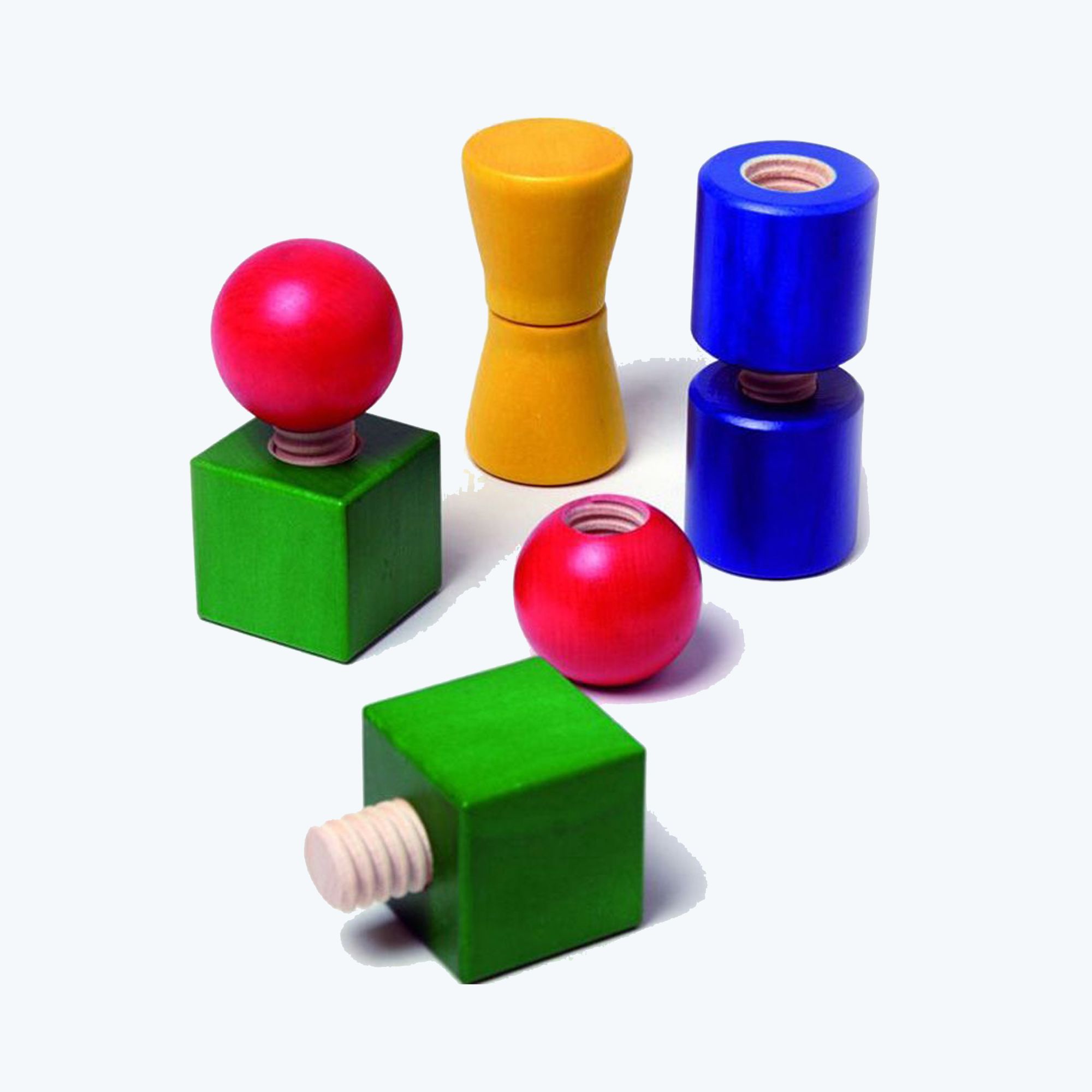 The screws and nuts in 8 colourful wooden parts can be combined in many different ways while training the motor skills of your chid in a playful way. The soft, round shapes and the robust mechanism are particularly suitable for children aged 1-3 years. It is high-quality craftsmanship with partly hand-painted surfaces and saliva-resistant paint.