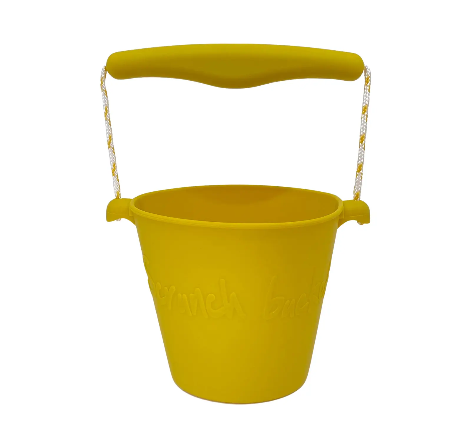The Scrunch sand bucket from Funkit World is perfect for every excursion, whether to the playground or to the beach in summer! The soft silicone can be easily folded up and rolled up to save space. So the bucket fits into every stroller or trunk! The material withstands sunlight, warm heat, and minus temperatures so it stays nice for years ahead. The handle of the Scrunch bucket is pleasantly soft and wide, so that your little one can carry a full bucket without hurting their hands.