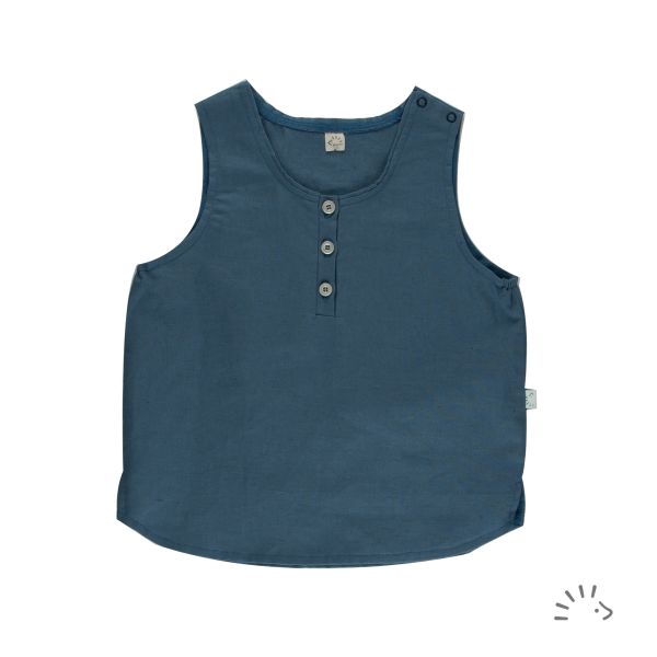 The simple Shirt style LIU is perfect for summer! Beautiful half linen fabric allows the skin to breathe and will become softer with each wash/wear. Extra-generous cut for great freedom of movement. Real button placket with mother-of-pearl buttons in the front center. Snap buttons on the shoulder for easy cloth change. With small slits on the side seams and slightly rounded hem.