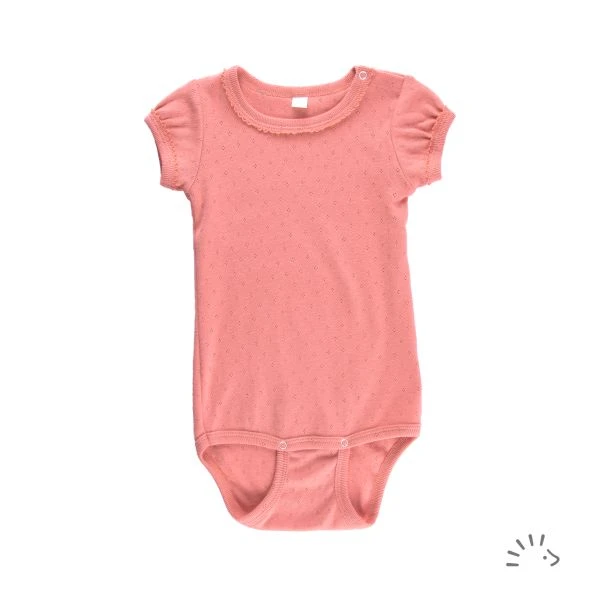Thanks to the size-adjustable snaps in the crotch, the body grows with the child and is ideal for cloth nappy bums. With delicate crochet seam details.