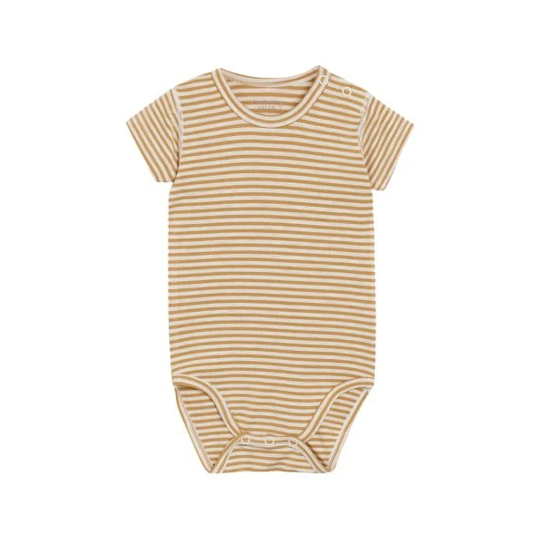 Short-sleeve body made of soft, elastic bamboo viscose with stripes. Popper fastenings on the left shoulder and between the legs makes it easier to put on and take off.The body is Oeko-Tex 100® certified.