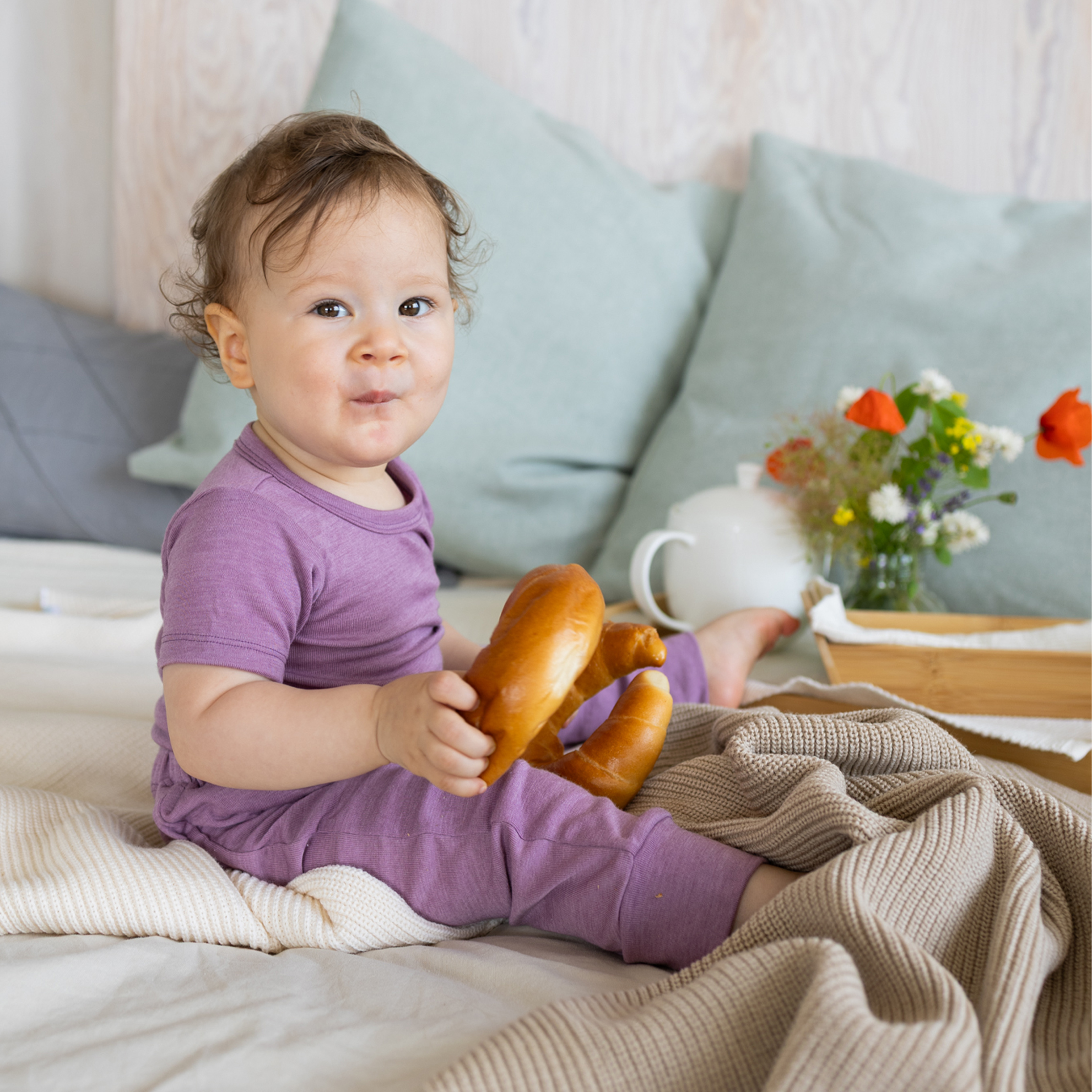 The thermo-regulating effect of wool, combined with the unique softness of silk - a precious mix! For our underwear, this GOTS certified material is particularly convenient because the demanding baby’s and children‘s skin, in constant direct contact with the fabric, is protected in a most natural way.