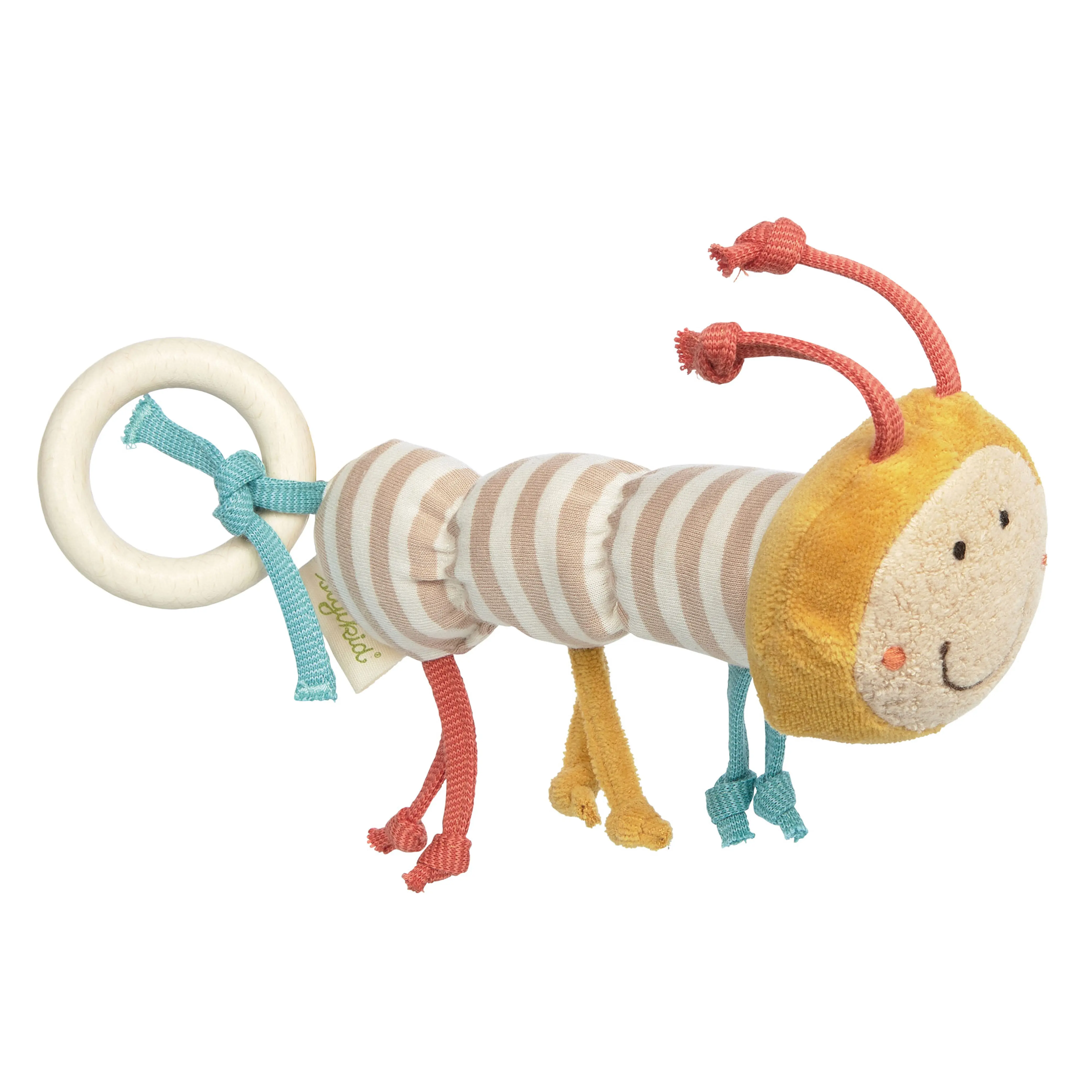 Should your baby's first toys be made of ecological materials? Then the Green collection from Sigikid is just right. All the different fabrics of this little rattle caterpillar are made of soft organic cotton, filled with new wool. The attached play and teething ring is made of smooth beech wood and is the perfect size for small baby hands.